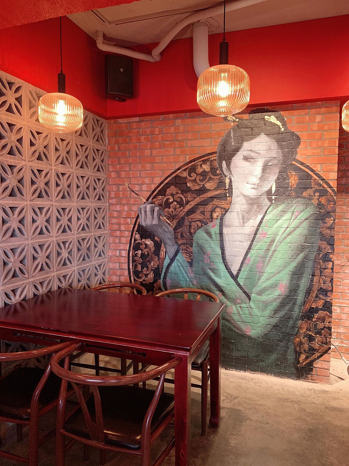 位於東區市民大道上,「青樓」光是裝潢就充滿濃厚的中式古典風,尤其店內的最搶眼的仕女壁畫,加上中式窗櫺當作隔屏,彷彿穿梭到了古裝劇中,也多了一處讓人稍微能遠離塵囂的喘息空間。