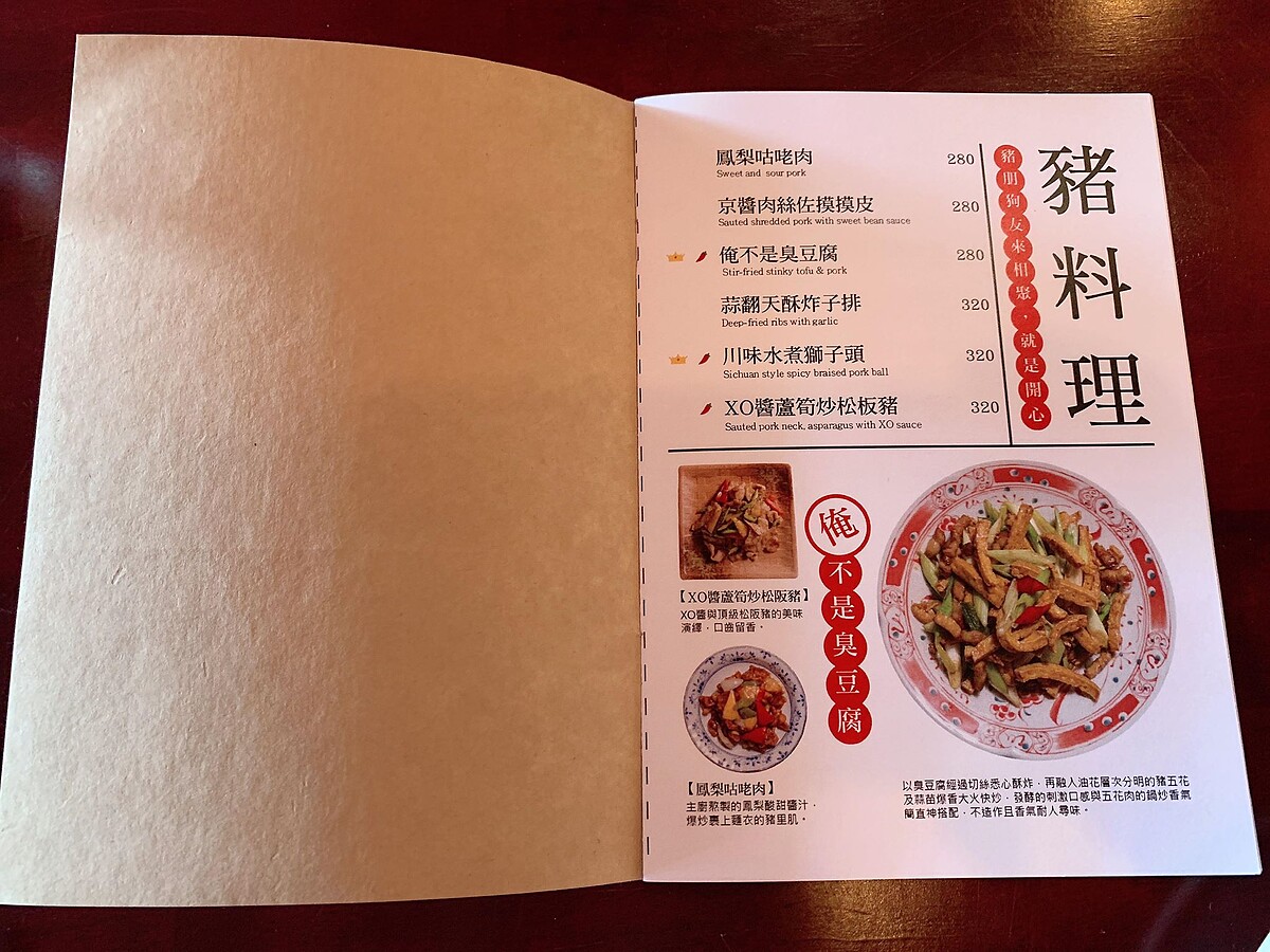 最重要的菜色上面,青樓當然也不馬虎,光是菜名就饒富趣味,像是「俺不是臭豆腐」、「我不是雪花冰」都是本店創意新料理,主廚阿宏表示「我不是雪花冰」改良粵菜大良炒鮮奶,利用鮮奶、蛋白、鮮干貝、蝦子等,並加入蝦卵和芒果點綴,營造出鹹甜鹹甜的柔軟系蛋料理,而「我不是臭豆腐」則是以客家小炒為靈感,將主要食材改為臭豆腐和五花肉絲,臭豆腐經由酥炸之後再熱炒,吃起來脆中帶軟,讓人忍不住一口接一口。