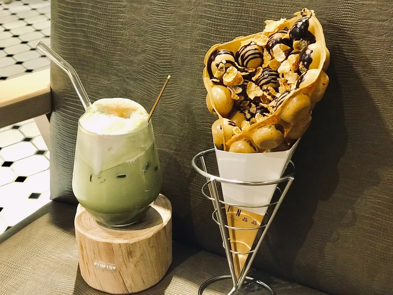附贈最經典的原味雞蛋仔,有別於一般甜膩的雞蛋仔,《品品CAFÉ》的雞蛋仔本身只有淡淡的甜味,不會讓人感到膩口,外皮酥脆、裡面Q軟,再搭配龍眼蜜蜂蜜再撒上桂花增添香氣、棉花糖,可以依照個人喜好自行淋醬~