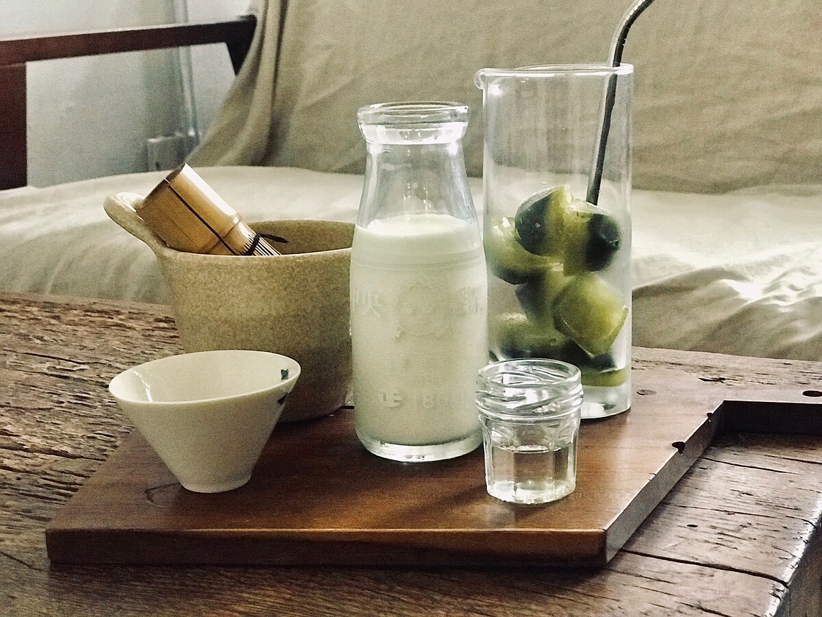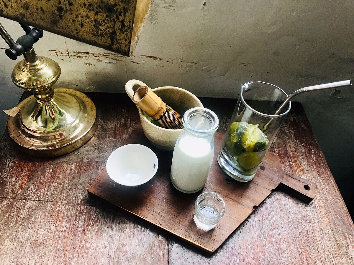 使用日本的抹茶粉製作,可以讓大家自行涮抹茶,品嘗抹茶風味,可以依照個人喜好調整加入抹茶、牛奶、糖,調製出一杯最美味的抹茶歐蕾!杯子中放入了抹茶粉製成的冰磚,即使冰塊融化了依舊是非常濃郁的抹茶香氣!