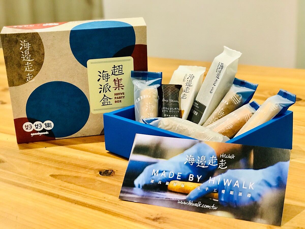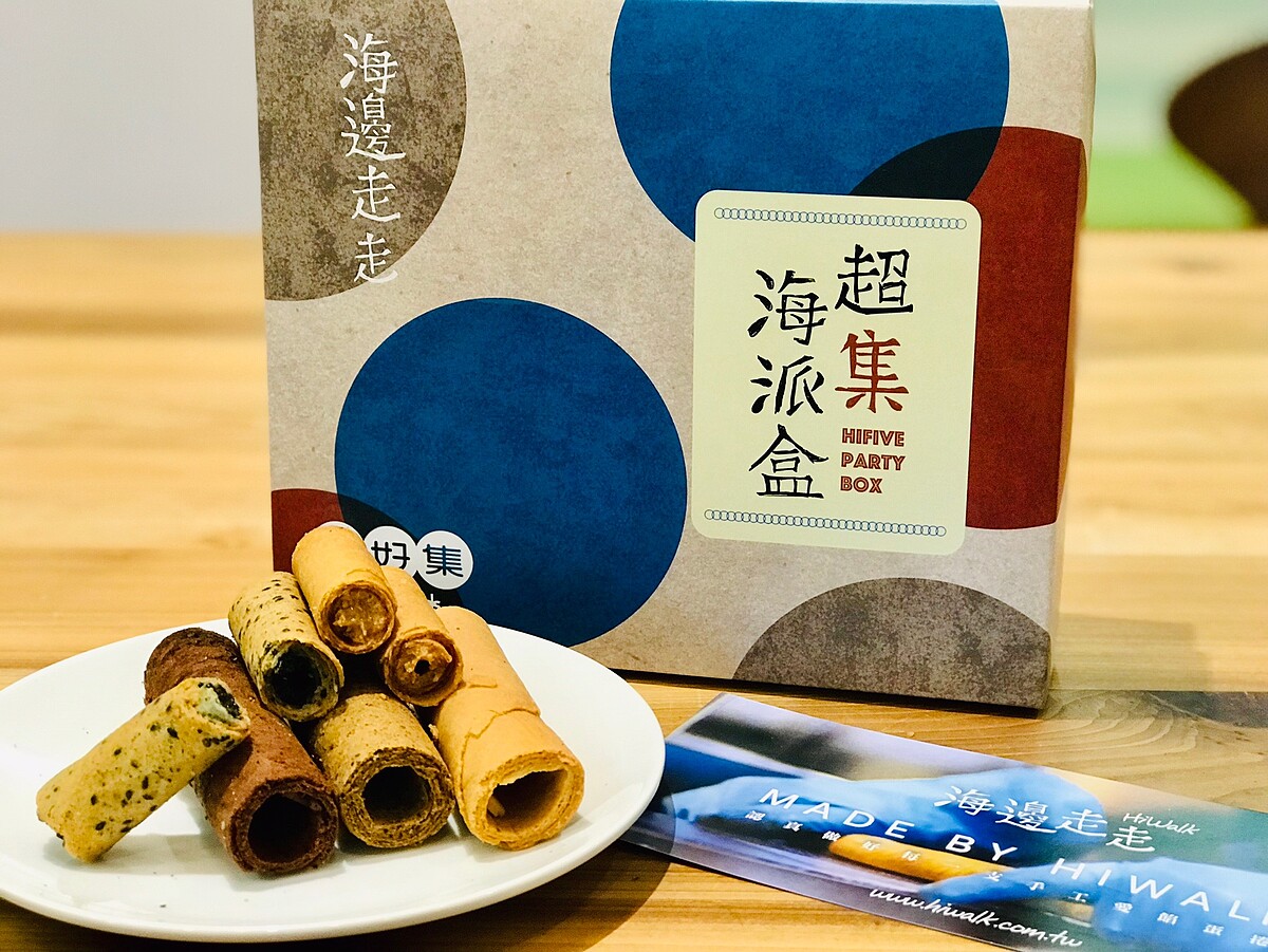 首度跨界與在地青年創業品牌海邊走走蛋捲合作,聯名推出「超級海派盒」,集結了海邊走走蛋捲必吃經典口味,像是花生愛餡、芝麻愛餡、鐵觀音、巧克力蛋捲……等等。