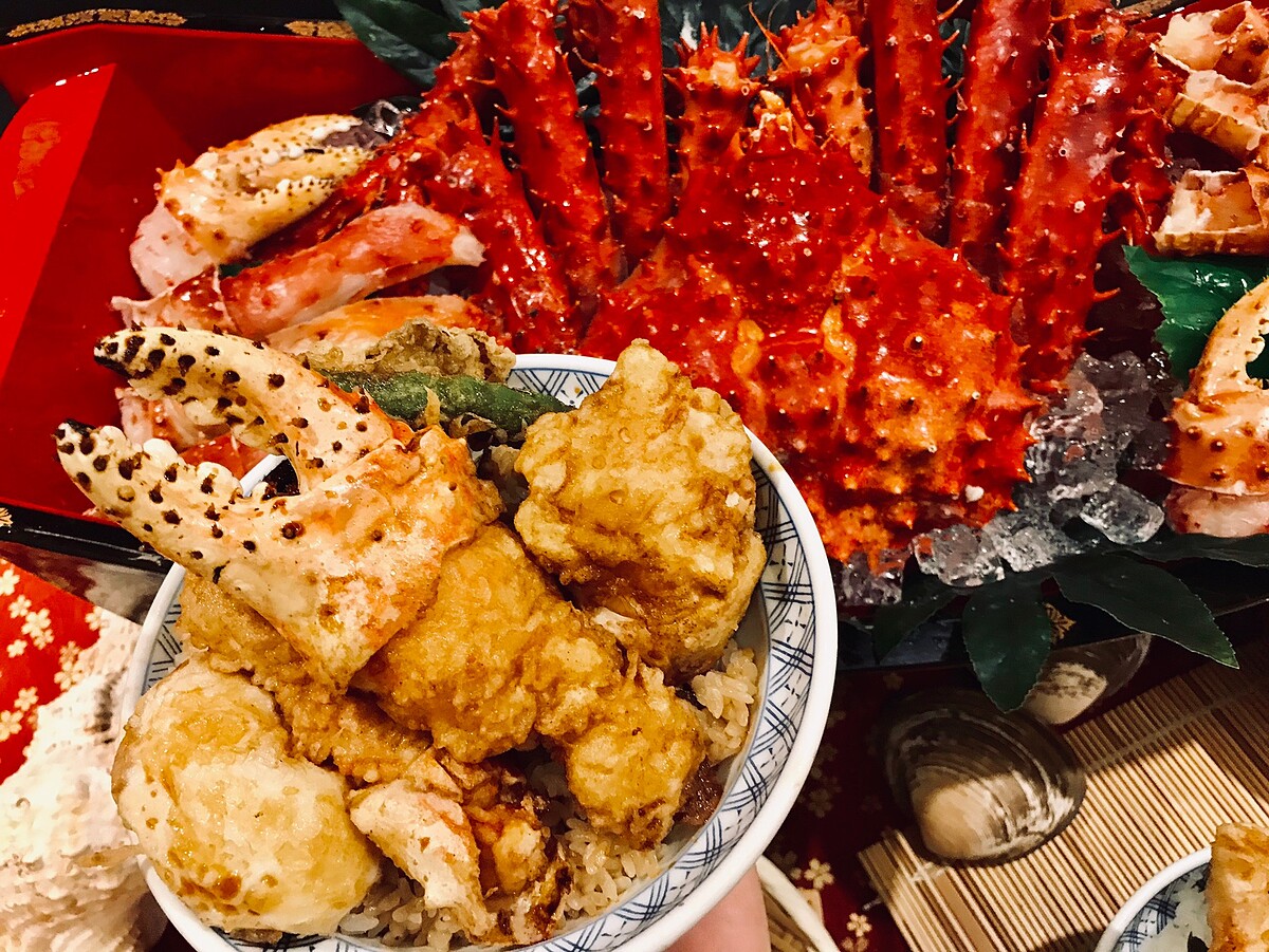 隨著秋天的到來,正是品嘗的海鮮的好時機!日本第一天丼「金子半之助」將素有「蟹中之王」美譽的帝王蟹製成超霸氣的「帝王蟹天丼」,超扎實的蟹肉入口絕對超滿足!