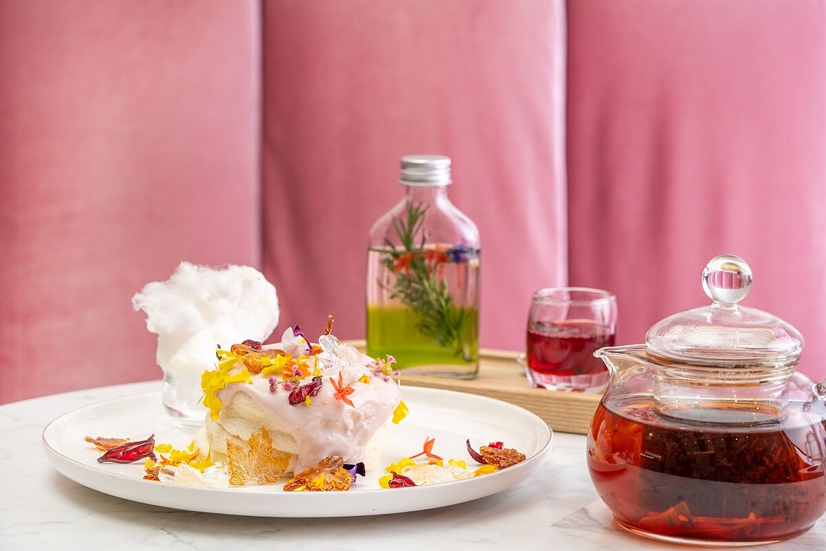 飲料則是以優雅溫順的伯爵茶與洛神花蜜調製而成,典雅清新的風味又解渴。