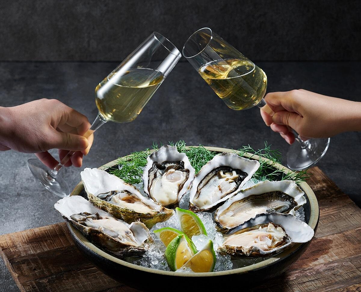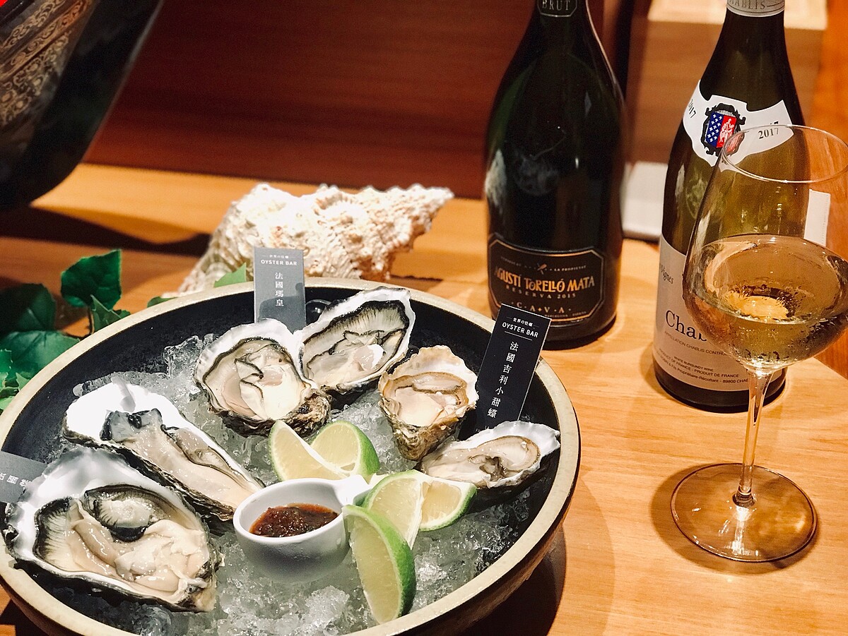為了搭配甜美的生蠔,日本橋海鮮丼つじ半同時推出兩款酒品,包含世界五大酒莊之一的西班牙Agustí Torelló Mata的Cava Reserva Brut 2015 翡翠氣泡酒以及法國Guy Robin Chablis夏布利白酒,細緻的氣泡中帶著柑橘般明亮的酸度以及淡淡的花香,搭配生蠔讓美味更加分。