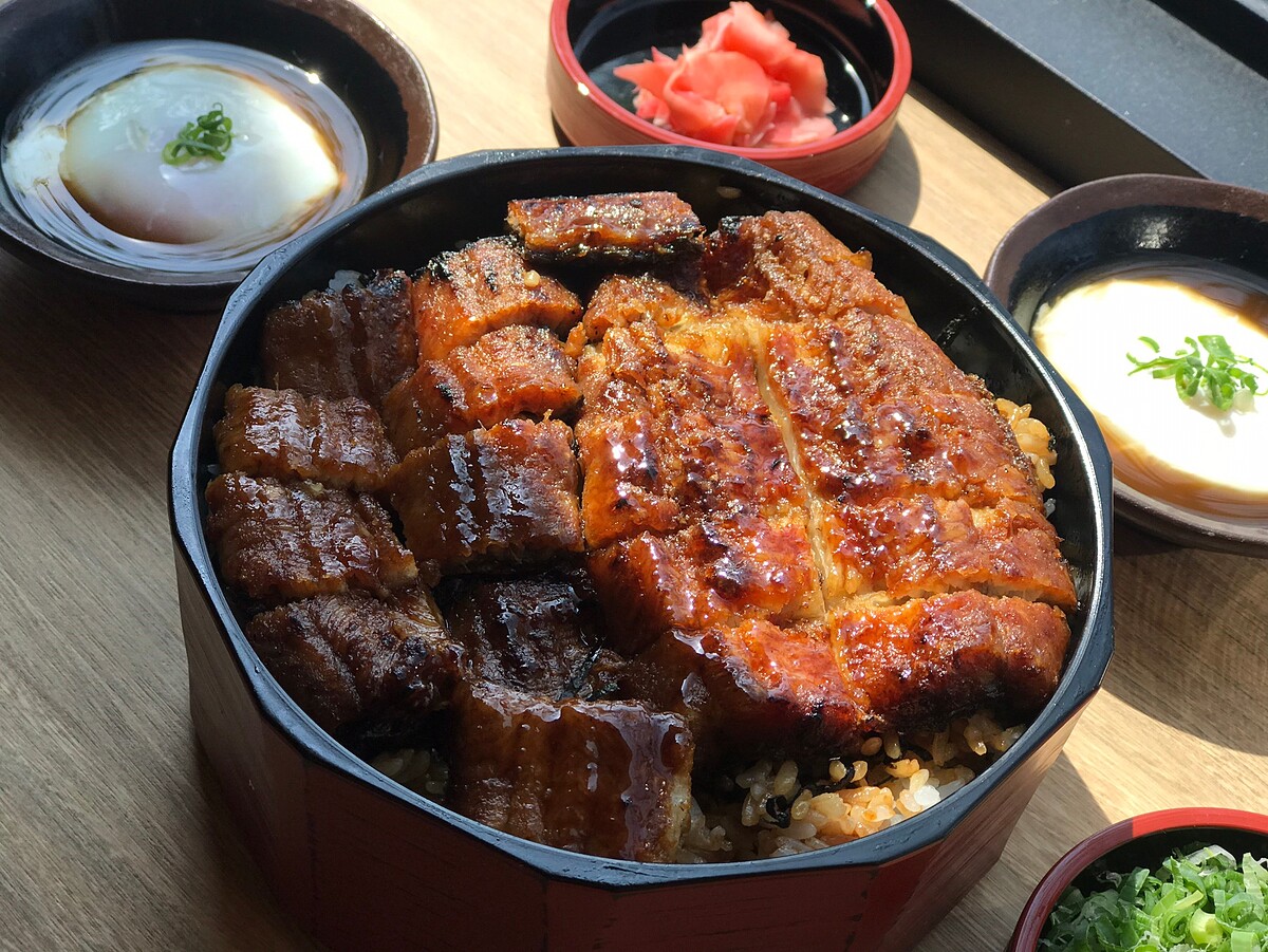 再回蒸籠將鰻魚稍微蒸軟,最後再以炭火回烤、反覆淋上鰻魚醬汁,饕客看得到也吃得到整尾鰻魚!除了經典必吃的鰻重、鰻魚釜飯、鰻魚蒸籠御膳等鰻魚料理~
