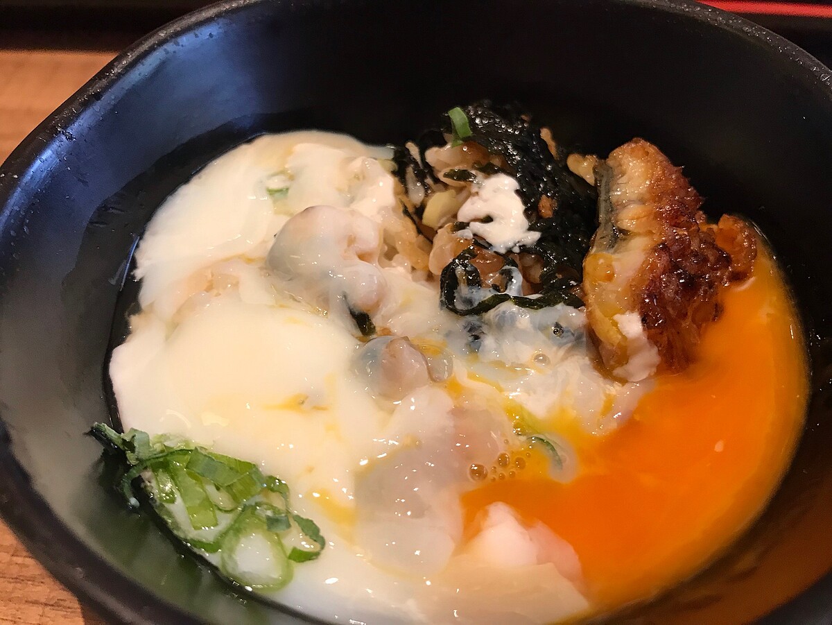 除了吃得到經典的鰻魚料理,店家也有多到創新風格料理,將韓式料理融入了鰻魚!在石鍋中,擺滿蒲燒鰻魚與牛蒡、紅蘿蔔、泡菜、共菜,最後再以鰻魚醬調味。藉由鰻魚醬調和更增添配菜的風味,不僅能吃鰻魚軟嫩滋味,同時能享受蔬菜爽脆口感、與鍋巴的焦香酥脆。