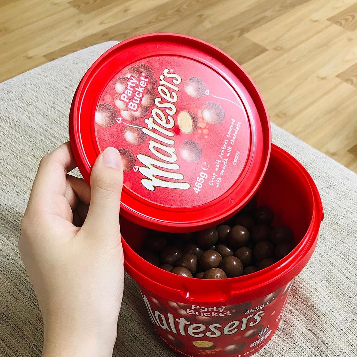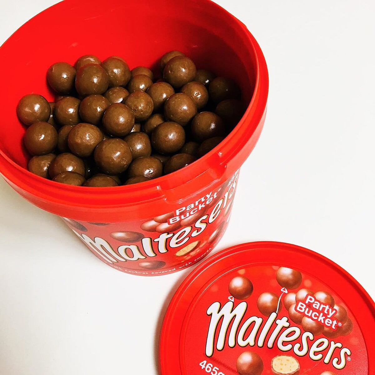 「麥提莎巧克力球Maltesers」一打開整桶滿滿的巧克力球真的超療癒~吃完後也還可以收納像是當作發票收納桶或是小型垃圾桶使用!