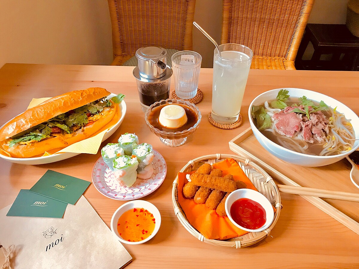 在越式料理當中必吃的絕對有「越式三明治」,《moi越式餐酒館》中的越式三明治比傳統的尺寸來的更大,為了大家即使吃越式三明治也能吃得飽!也有許多人不敢嘗試越南傳統的豬肝醬,於是《moi越式餐酒館》以奶油取代!
