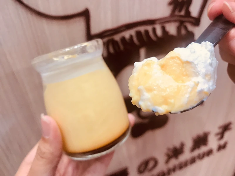 布丁上面鋪上一層鮮奶油,整體吃起來更加香濃滑順!是隱藏版的必吃甜點~