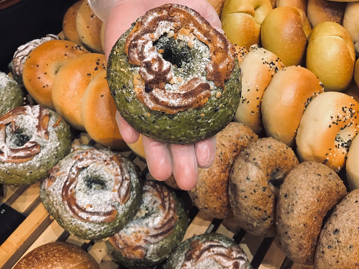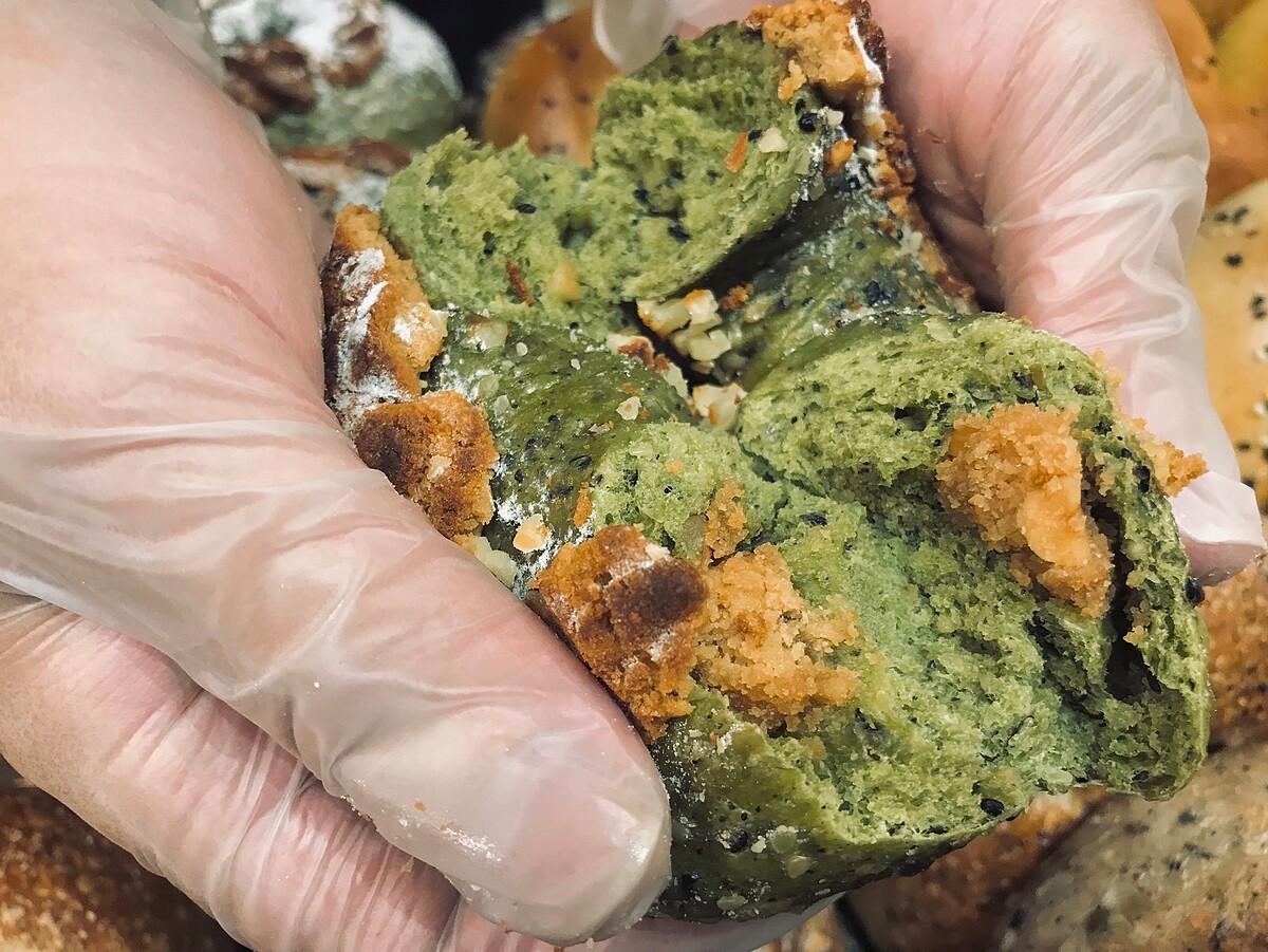 板橋店推出限定口味,獨創使用南瓜子、核桃、堅果製作而成的綜合堅果雜糧粉,選用日本濱佐園的抹茶混合成堅果風味的擂茶貝果麵糰!