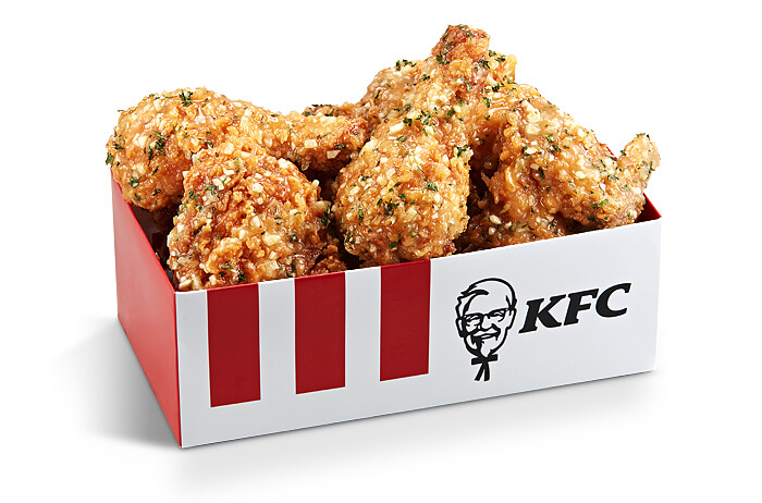 韓國肯德基KFC近期推出許多新品像是超紅的炸雞皮,現在又推出「大蒜風味炸雞」,光是圖片看起就美味度滿分~實在太誘人了!
