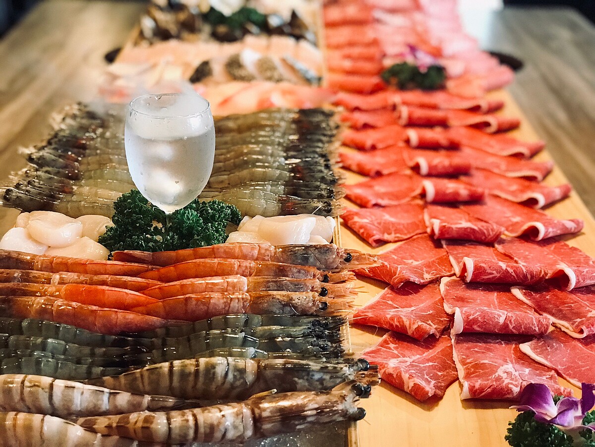 除了海鮮還有大份量共100盎司約2公斤重的肉品,可以選擇兩種不同風味,分別有里肌牛肉50盎司、梅花豬50盎司、雪花牛50盎司!