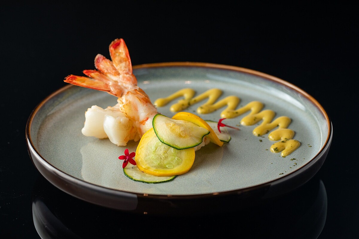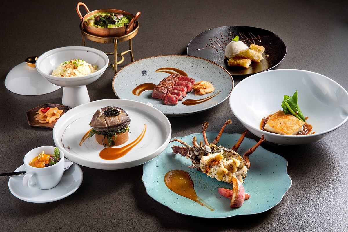 亮點菜色包括前菜、開胃菜以食用金箔點綴的「北海道海膽烤布蕾」、主廚以巴西里、核桃、奶油、鮮奶油特調而成的荷蘭芹醬料理的「香菇田螺佐荷蘭芹醬」,這道也是1991年的經典菜。