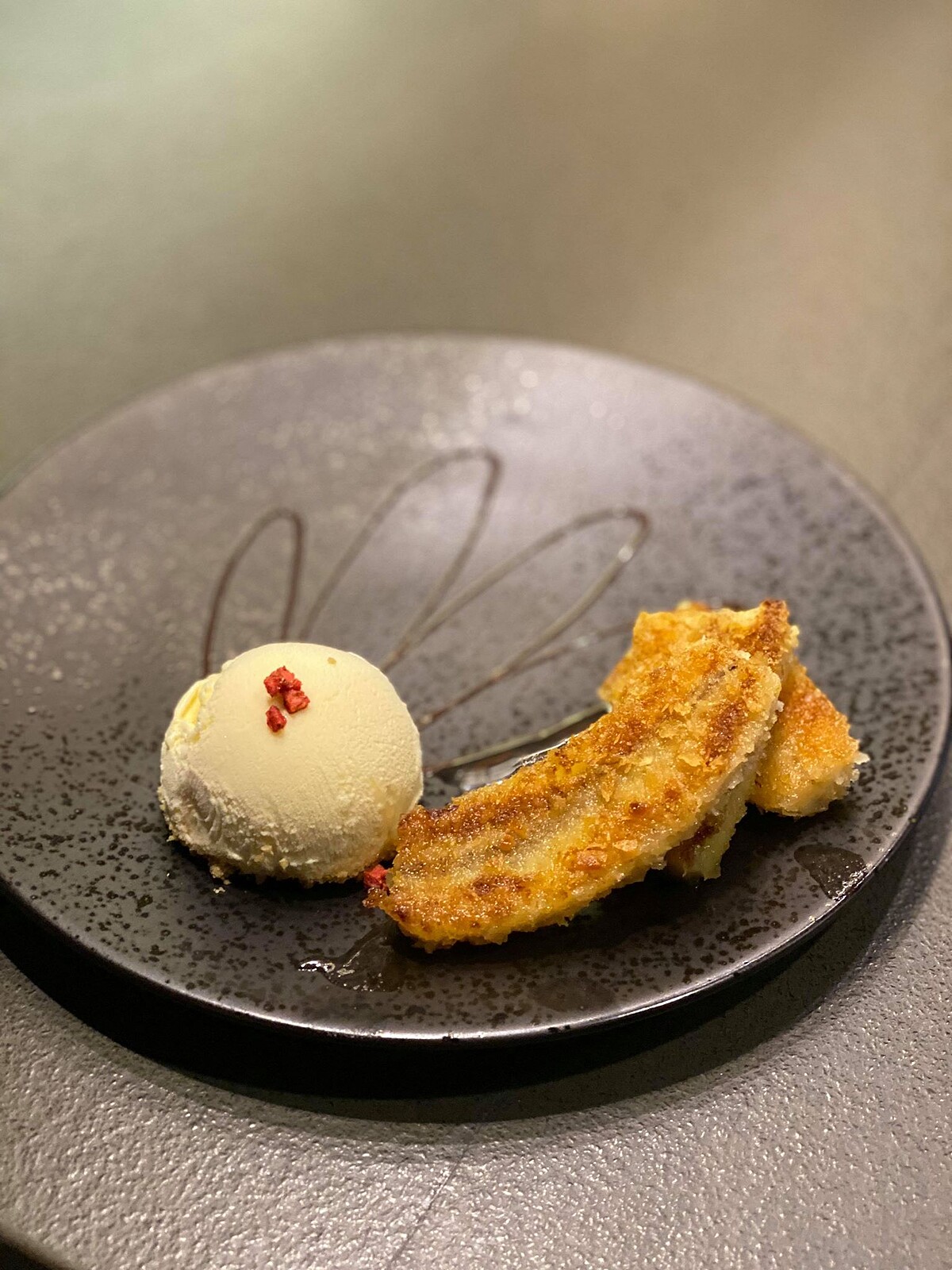 而不能錯過的甜點部分則是「鐵板慢煎蜂蜜香蕉」,同樣還原1991年的料理,以台灣小農香蕉與阿里山新鮮蜂蜜為食材,自製麵包磨成粉後風乾包裹半生熟香蕉,鐵板慢煎後加入阿里山新鮮蜂蜜,是螞蟻人必吃的完美結尾。