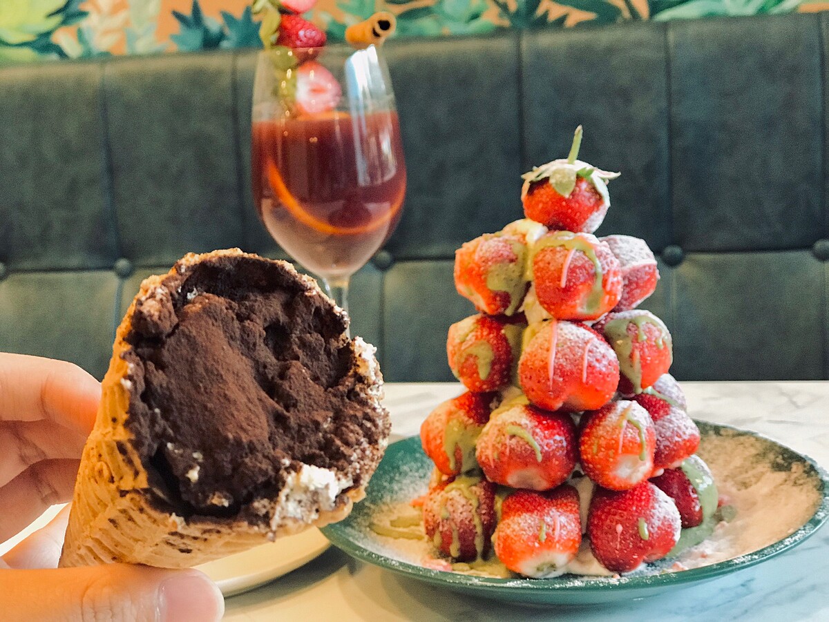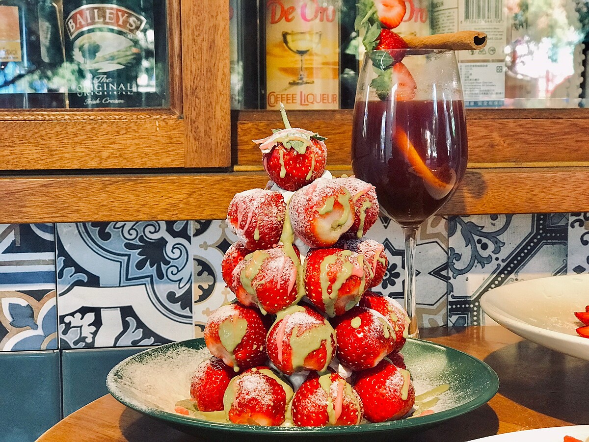 高15公分的草莓塔一秒化身餐桌上的超美的聖誕樹,最後可隨個人喜好淋上特製抹茶醬,抹茶微苦滋味搭配新鮮草莓將酸甜提升到另一個層次。