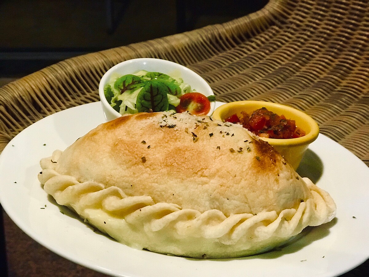 使用披薩餅皮製作,內餡中加入了滿滿的起司,一刀切下後超罪惡的起司緩緩流出,起司控們絕對不能錯過~
