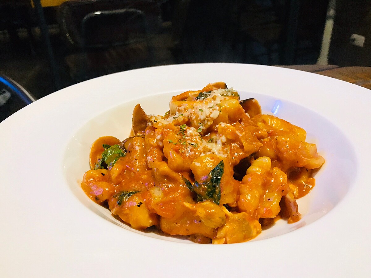 使用杜蘭小麥粉手工製作,品嘗起來非常Q彈扎實有別於傳統的麵疙瘩,麵疙瘩還隱藏了小巧思,在上方有刻痕讓烹煮過程中醬汁能夠讓麵疙瘩更加入味!