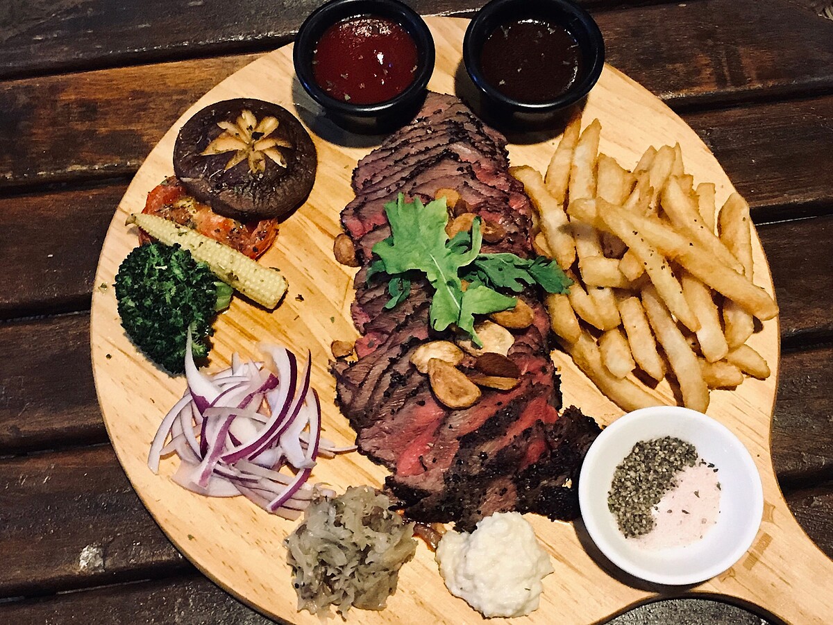 選用牛肩肉先煎後窯烤精心烹調,整體熟度約5分熟,帶有些許筋吃起來多汁有口感,建議先品嘗原味,再佐紅酒牛肉醬汁,也可以品嘗蔬菜解膩!