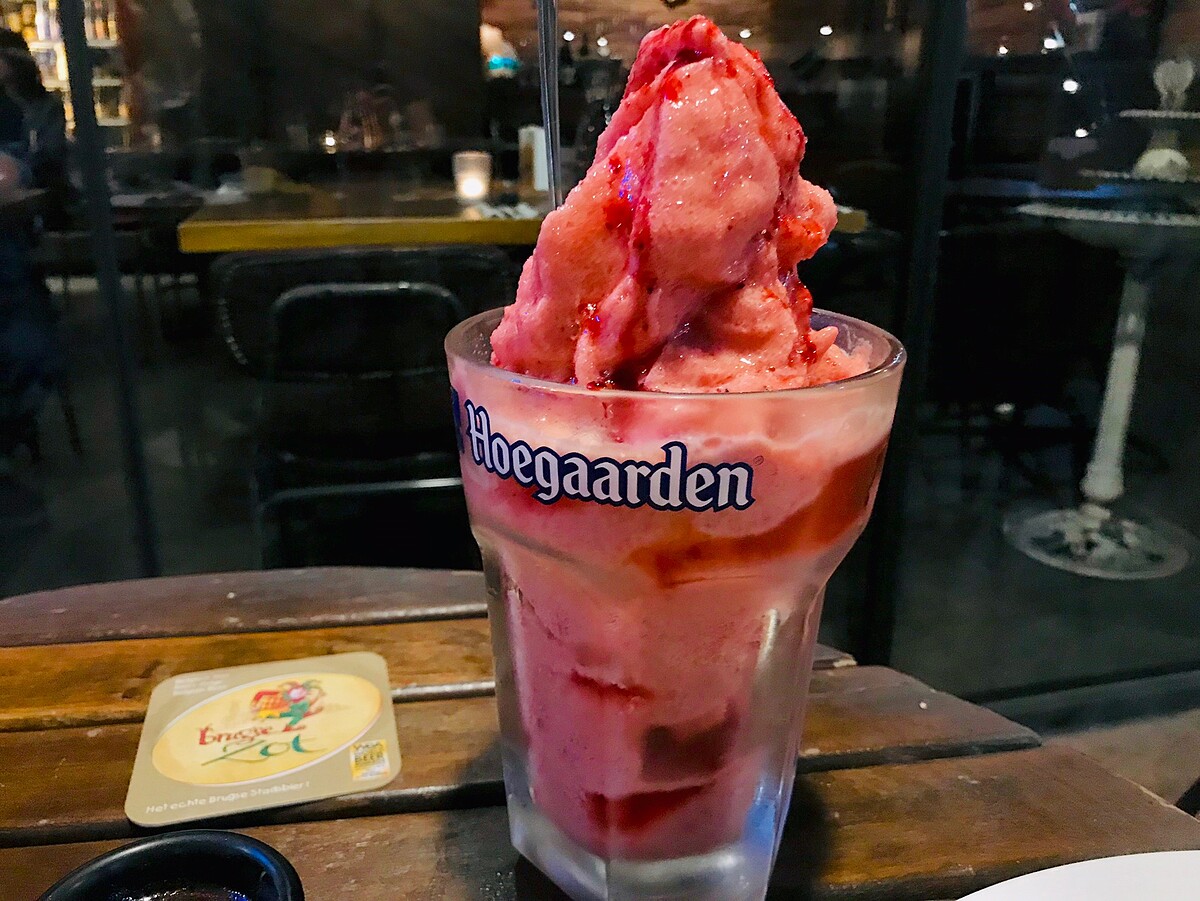 超巨大的草莓啤酒冰沙帶有果香口感十分綿密,非常適合不喜歡酒味太重又想小酌的人飲用!