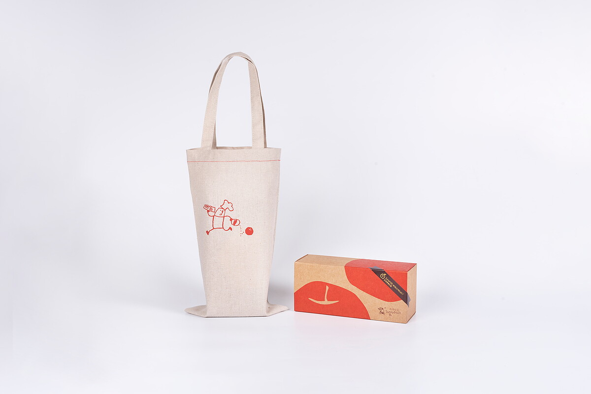 產品外盒印上專屬的紅玉蘋果插畫,配上《微熱山丘》經典的布提袋,清新可愛的包裝及甜點風味,適合朋友相聚的優閒下午,搭配台灣日月潭的紅玉紅茶更是最佳茶食組合!