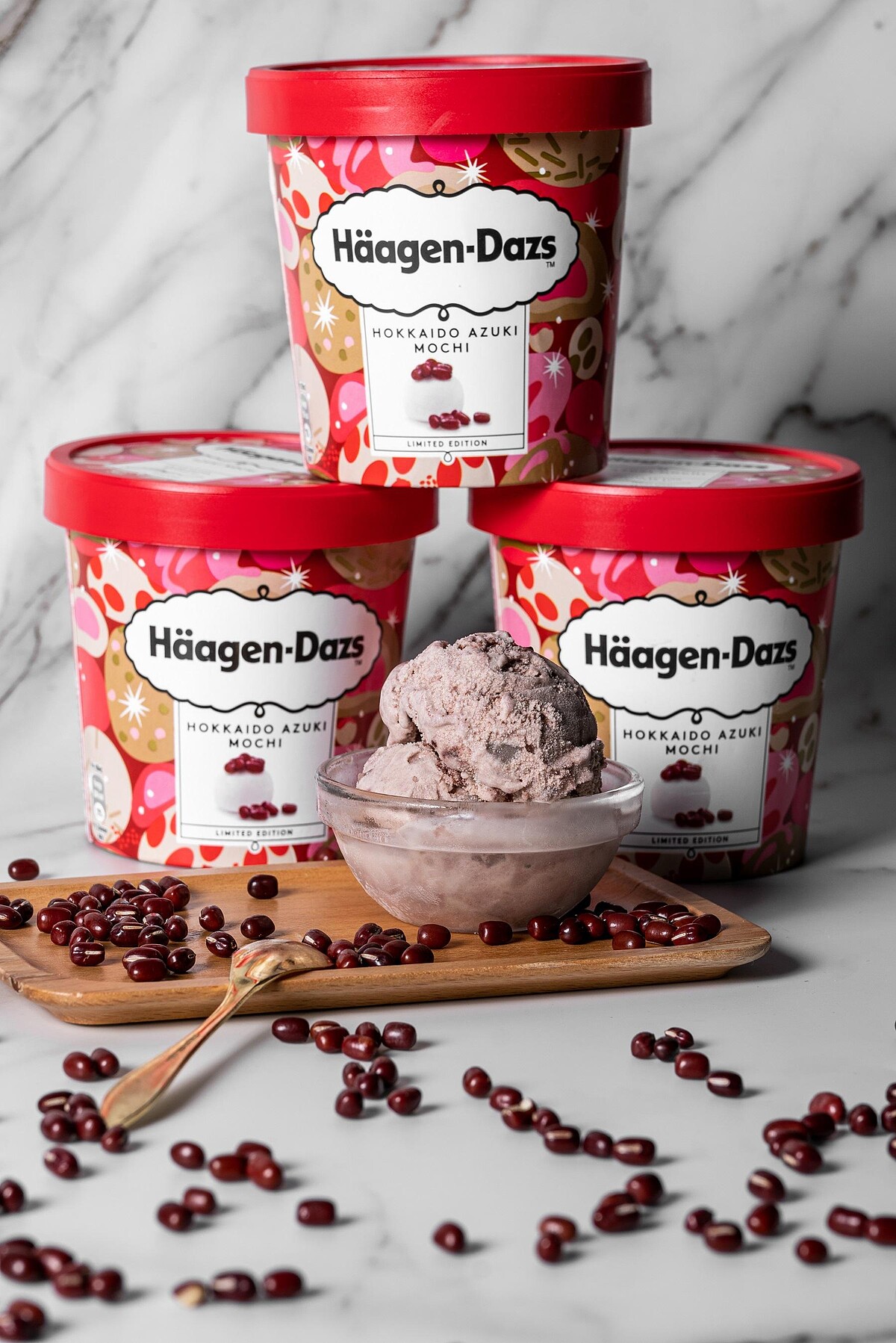 嚴選色澤飽滿的北海道紅豆,帶有紅豆香氣、綿密柔軟的細緻質地,再加入濃郁的高品質紅豆醬,製成香濃順口的紅豆冰淇淋!