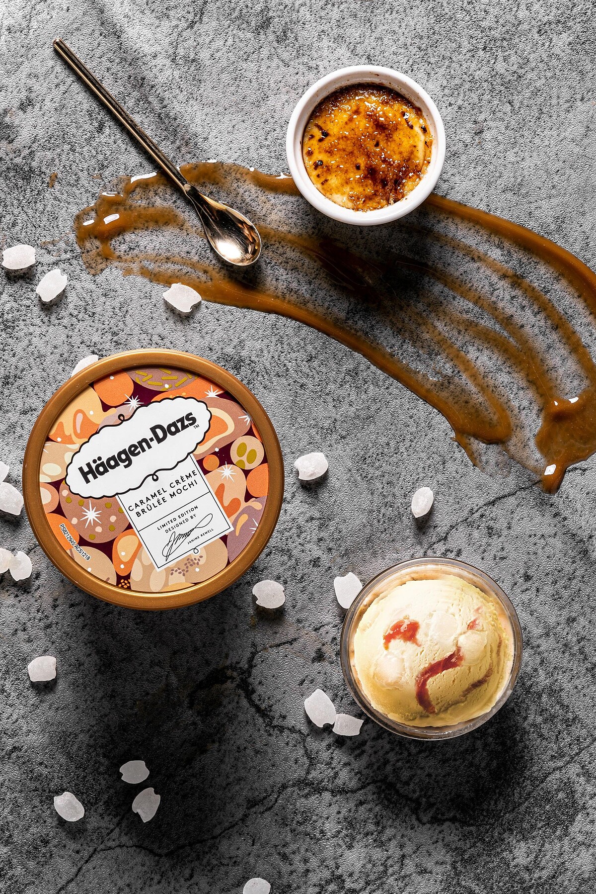 法式烤布蕾滋味與全新升級的Q彈麻糬完美結合,口感絲滑的冰淇淋加入層次豐富的焦糖醬,具有焦香濃醇的烤布蕾風味與口中彈跳的軟Q麻糬,帶來口感口味雙升級的完美享受!