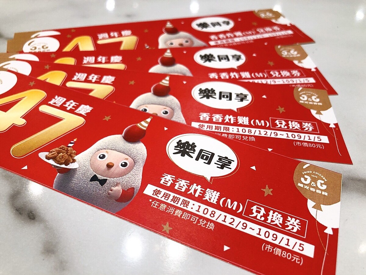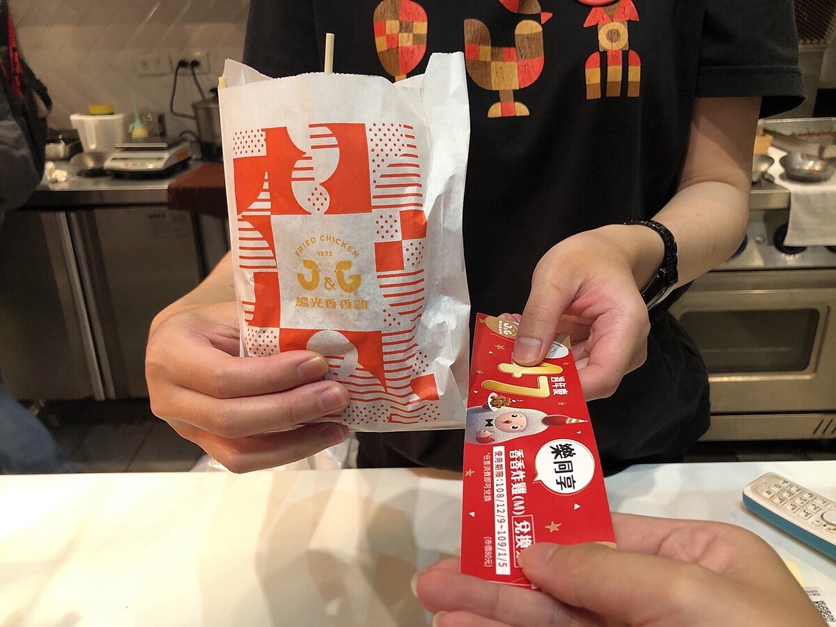 台灣:買(大)份香香炸雞贈(中)份香香炸雞兌換券