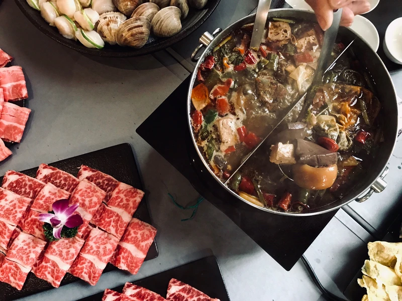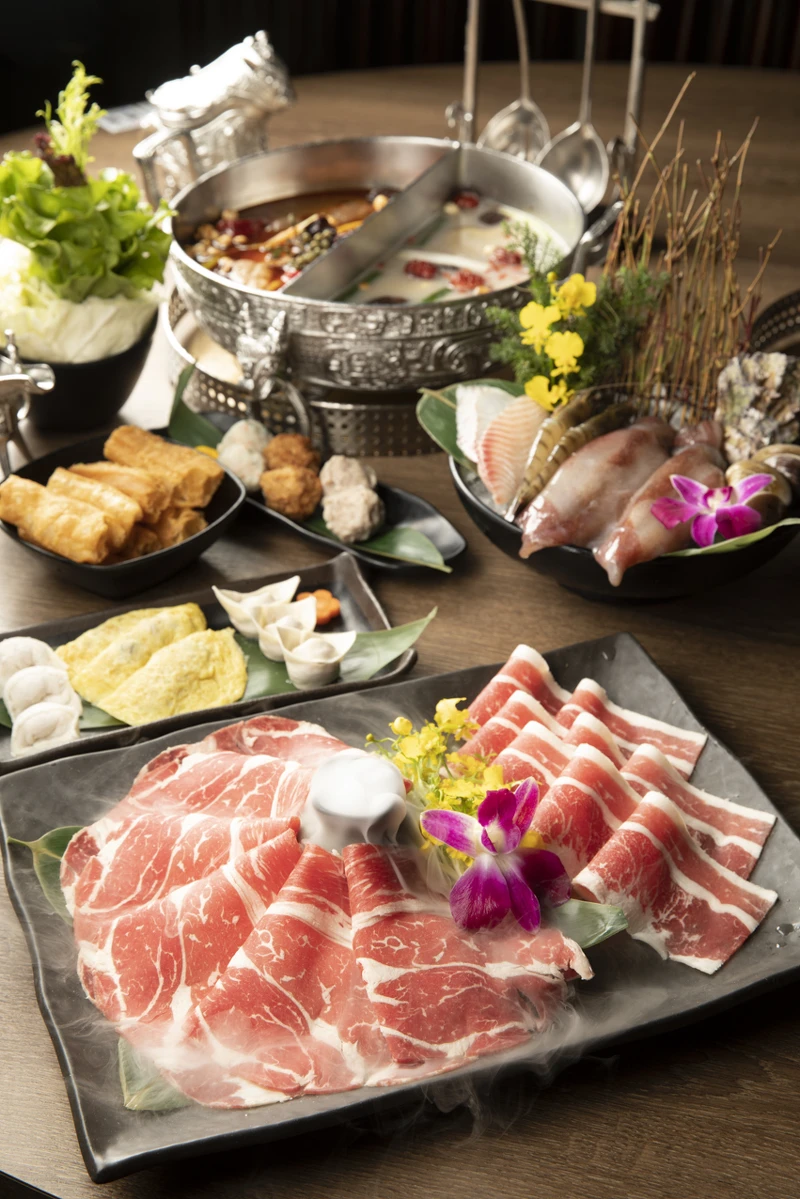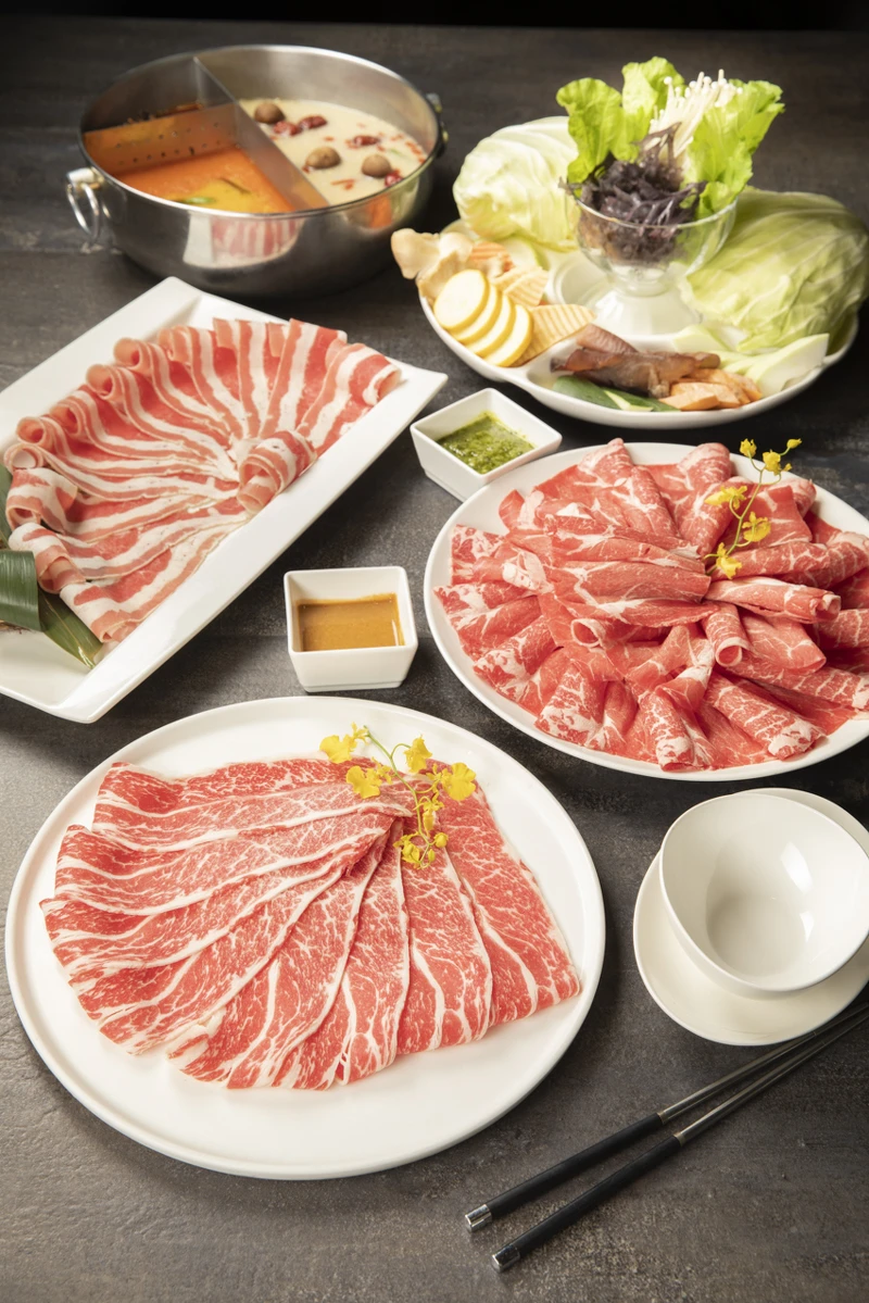 這裡提供Choice級以上的美國黑牛冷藏板腱肉、雪花胸腹肉,還有Prime級冷藏牛背肩和牛小排,再搭配真心實意花長時所慢熬的美妙湯底,特選產地直送新鮮食材熬煮,各式湯頭鮮美濃韻,層次豐富,完美映襯出高級冷藏肉品的鮮甜美味。