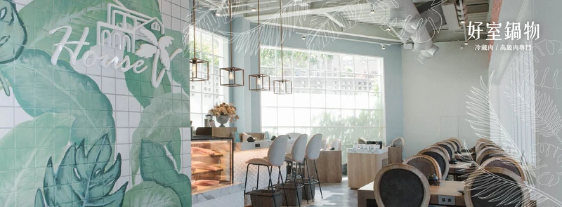 HOUSE V好市鍋物的V意指VILLA,網美系的餐廳外觀像是甜點店一般,但裡面卻火鍋店。店主將用餐空間風格以歐系花草風格為主軸,再加心思巧妙運用大理石材、刷綴馬卡龍色調與高雅擺飾妝點,在甜美浪漫氛圍中透出優美高貴氣息,彷彿置身在峇里島慵懶度假村的夢幻感。