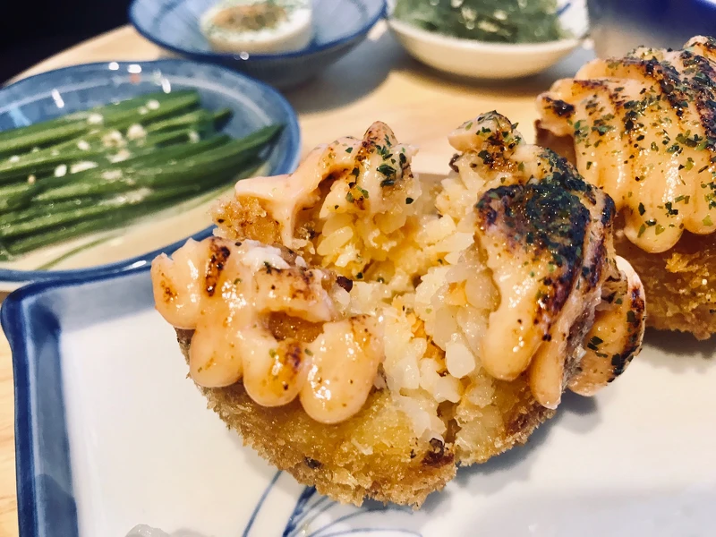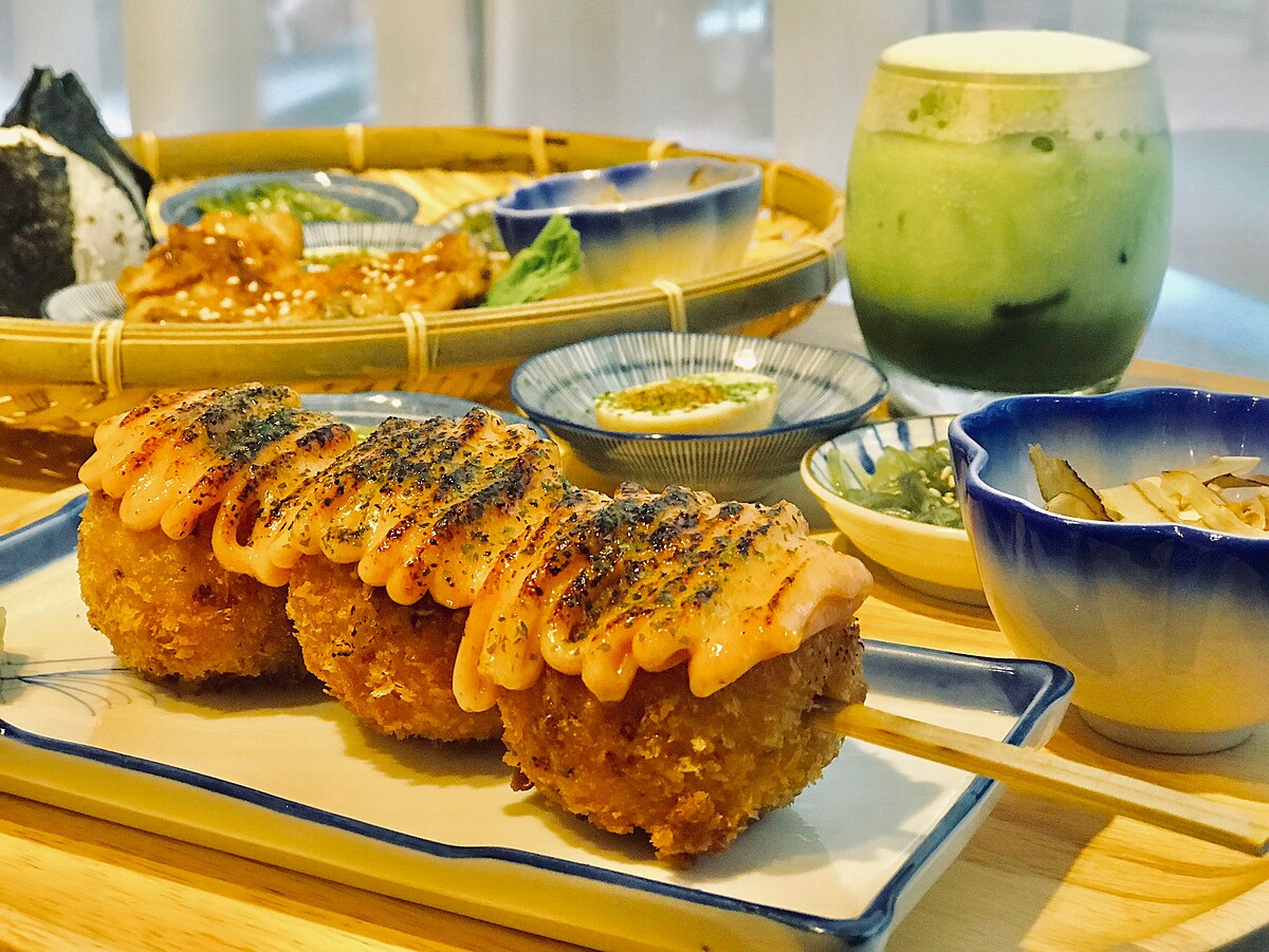 將包著鮭魚、紅藜麥及濃郁起司炸得金黃酥脆後,淋上特調的明太子醬在經過炙燒後,一口咬下牽絲的起搭配鮭魚及名太子醬口感非常搭配!