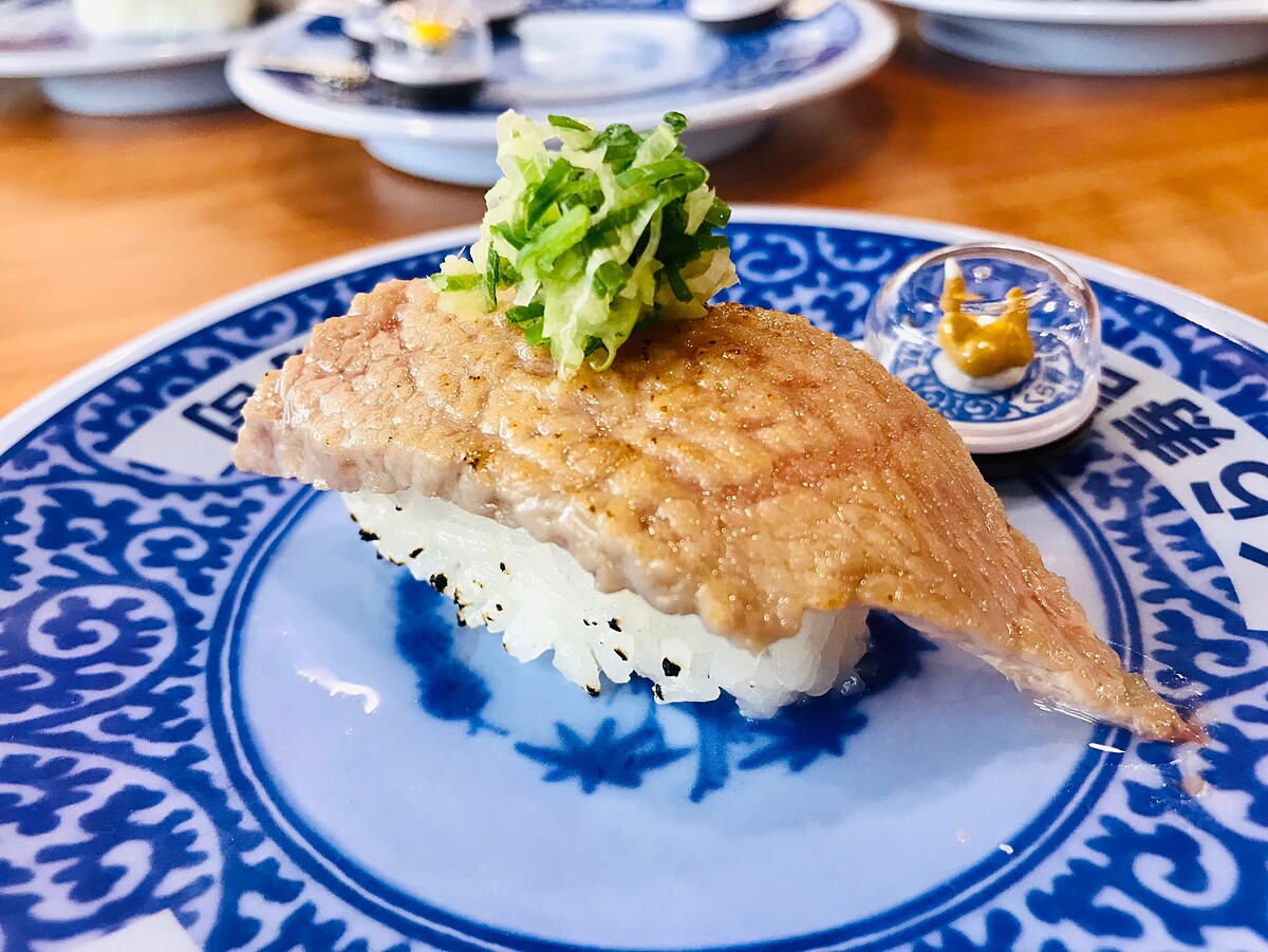 精選鮪魚中的帝王級「黑鮪魚」的大肚經過稍微的炙烤過後,香醇濃厚的油脂,帶有焦香及軟嫩口感,一吃就上癮!