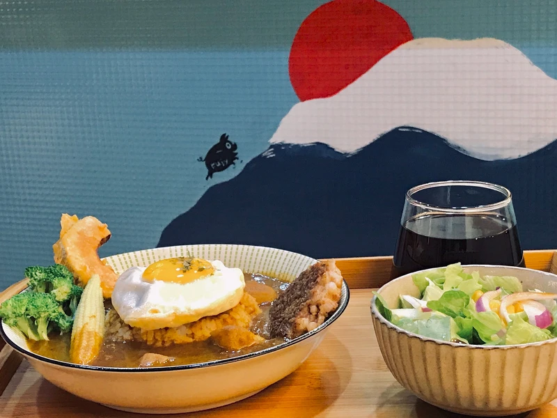 咖哩飯帶有獨特香氣,口味是像日式咖哩偏甜的風味,再搭配厚度扎實的手打豬肉排!