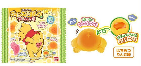 這款維尼軟糖是蜂蜜蘋果風味,入口就能感受到蜂蜜香氣,軟糖內還包有蜂蜜的夾心內餡,每一口都超療癒~