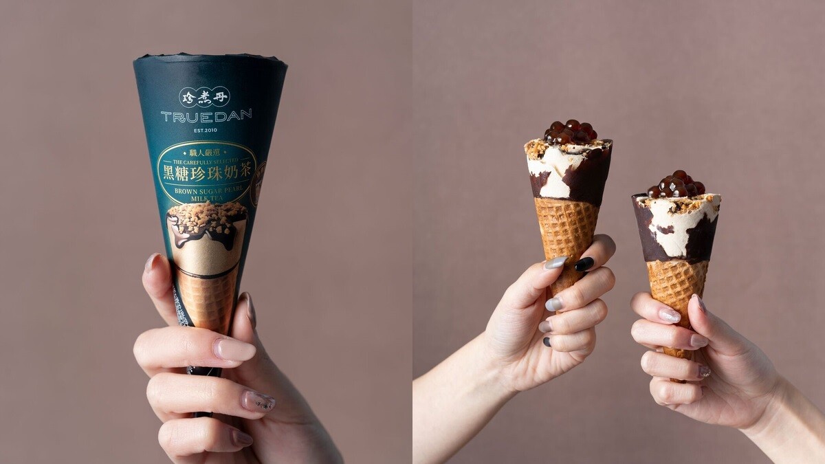 黑糖珍珠鮮奶原本就是珍煮丹的人氣商品,沒想到竟然變身為甜筒,採用獨家冷凍技術,讓珍珠在低溫下依舊維持Q彈口感,嚴選黑糖蜜入珠芯的珍珠,甜筒外皮吃起來更有淡淡紅茶香,就連包裝還有巧思,採用「金色透鋁」的印刷工法,拿在手上質感爆棚。