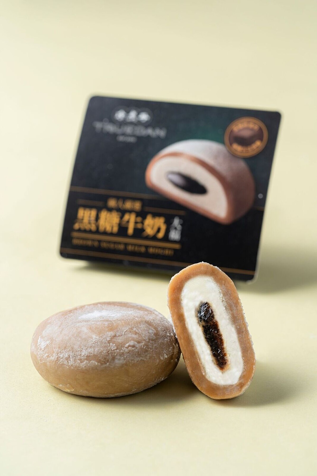 另外一款黑糖牛奶大福,則是將Q彈麻糬皮加入了珍煮丹獨家黑糖,包入香濃鮮奶冰淇淋內餡及濃郁黑糖蜜,絕對是黑糖控不能錯過的夢幻甜點。