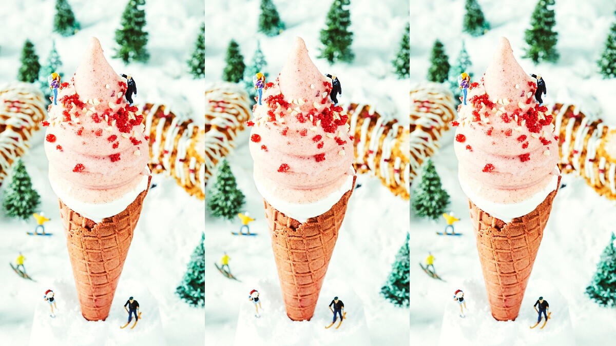 充滿聖誕節氣氛外型吸睛甜美,口感像是冷凍鮮奶油般濃厚的霜淇淋及精緻的草莓巧克力,霜淇淋上點綴草莓碎片和杏仁粒,四種不同口感一次享受!