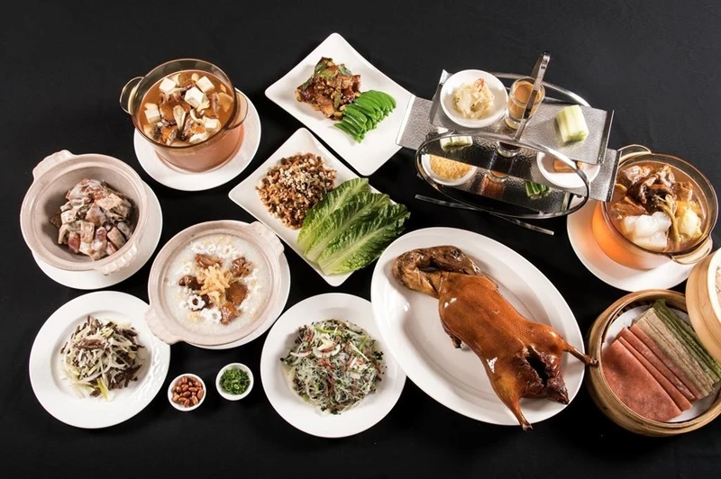 喜歡一鴨多吃的人,還可以再選擇「雪菜鴨絲紋鴛鴦粉」、「芋香臘味鴨架煲」、「陳皮冬瓜鴨架湯」等料理,另外還有用極品三寶「鮑魚、刺參、魚肚(花膠)」切成小丁料理的「福建鮑魚刺參炒飯」,快找時間去品嚐這批兼具創意與特色的美味粵菜!