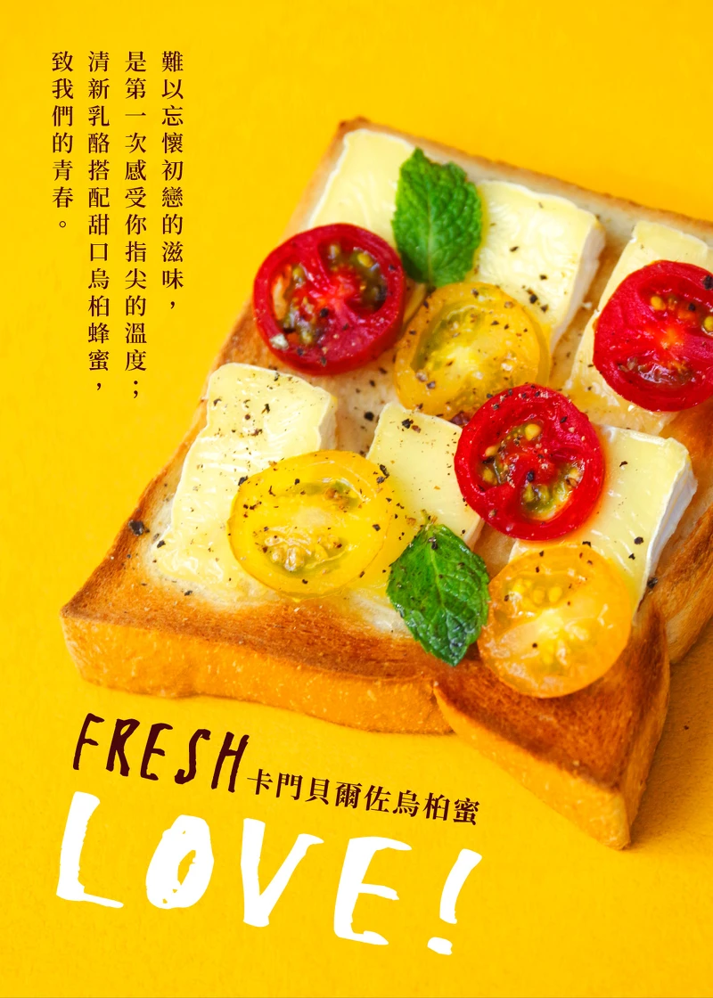 富錦店獨家推出「TOAST LOVE」全系列吐司新品,共特製7款戀愛口味,Pure Love「經典原味」、Fresh Love「卡門貝爾佐烏桕蜜」、Attractive Love「焦糖肉桂蘋果」、Sweet Love「滑順花生香蕉」、Warm Love「舒肥嫩雞佐蛋沙拉」、Excited Love「黑胡椒牛肉佐毛豆泥」、Rich Love「酪梨佐香料煎菇」……等等。每款都代表不同的戀愛心情!