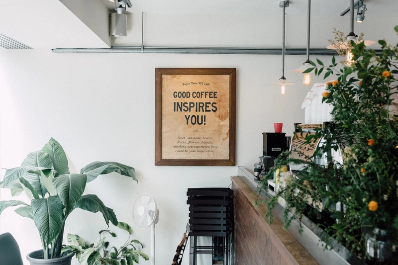 富錦樹咖啡的富錦店位在民生社區中,有別以往傳統咖啡廳的格局,讓綠意、街景與陽光結合的開放式門面,店內不定期舉辦藝術家展覽打造精緻質感的視覺饗宴!