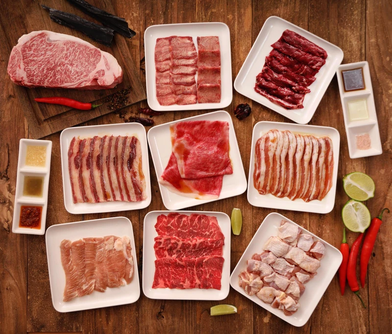 另有提供六種醬料像是雲林蒜頭調製的「蒜泥」、朝天椒與多種香料加和牛油慢炒的「麻辣醬」、日本醬油融合台灣麥芽糖熬煮的「燒肉醬」、喜馬拉雅山「玫瑰鹽」、爽口解膩的日本九州「柚子胡椒」、屏東無毒檸檬調製的「檸檬汁」等六種特調沾醬任君選擇,為肉品增添風味!