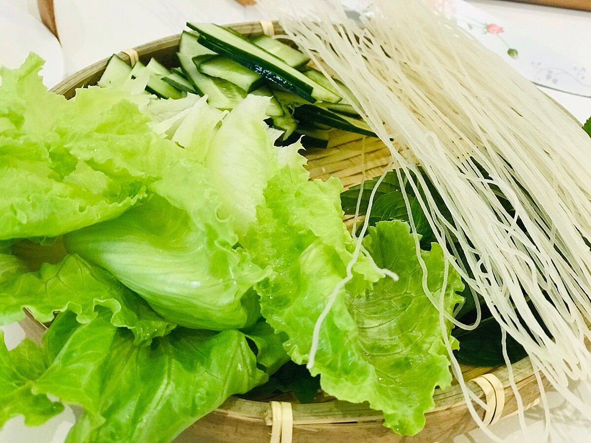 越式春捲皮以木薯為原料,含有碳水化合物,欲減肥健身者,可不用再加米線,直接多放蔬菜即可享用。