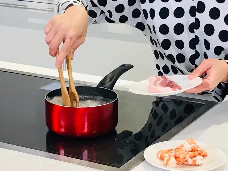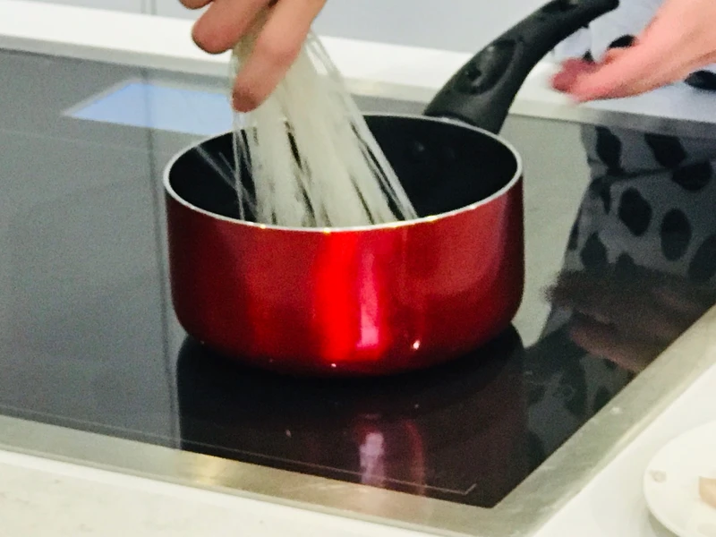 步驟二、鍋子煮水,放入越南米粉汆燙煮熟後撈起盛碗。