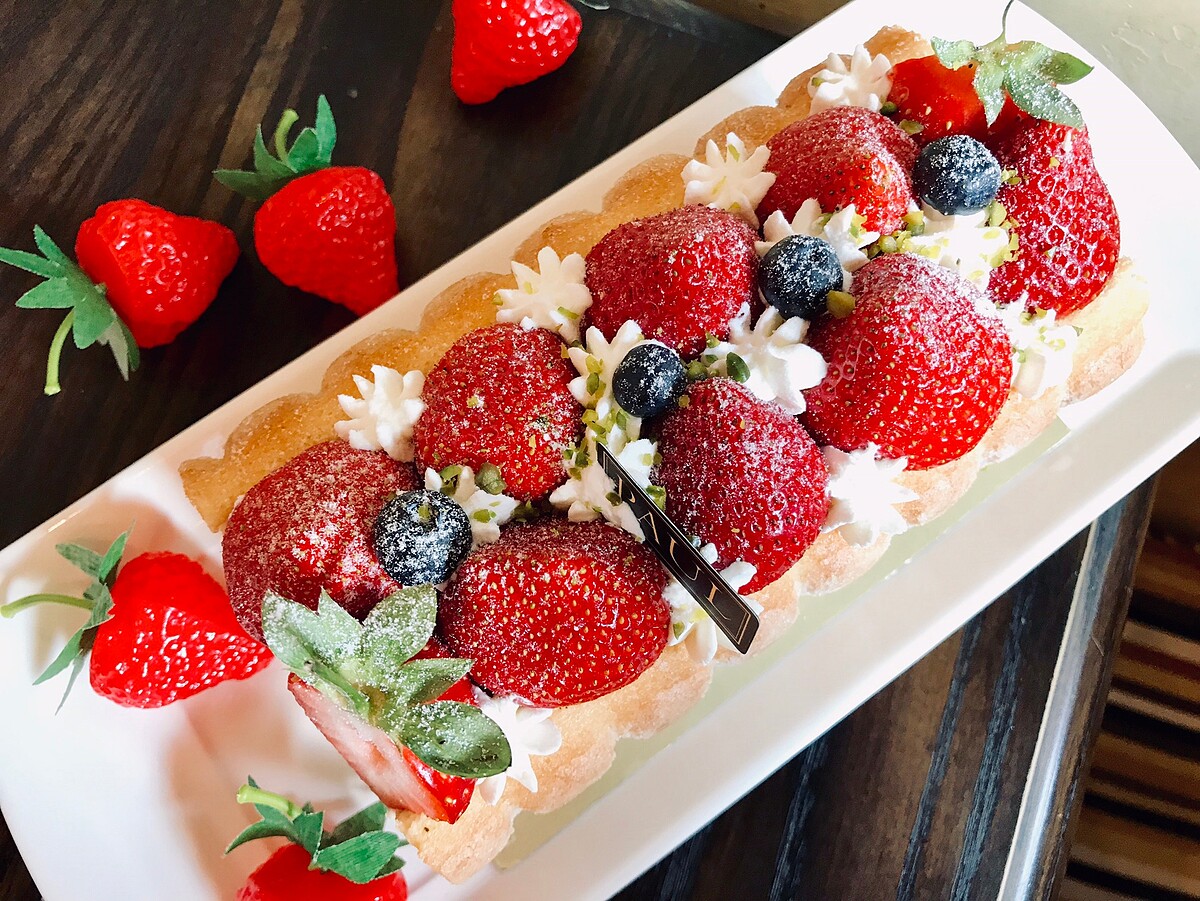 上方擺滿鮮嫩欲滴的草莓、藍莓,酸甜的口感與香甜濃郁的奶香蛋黃餡、外酥內軟的手指餅乾,層層堆疊出完美滋味!
