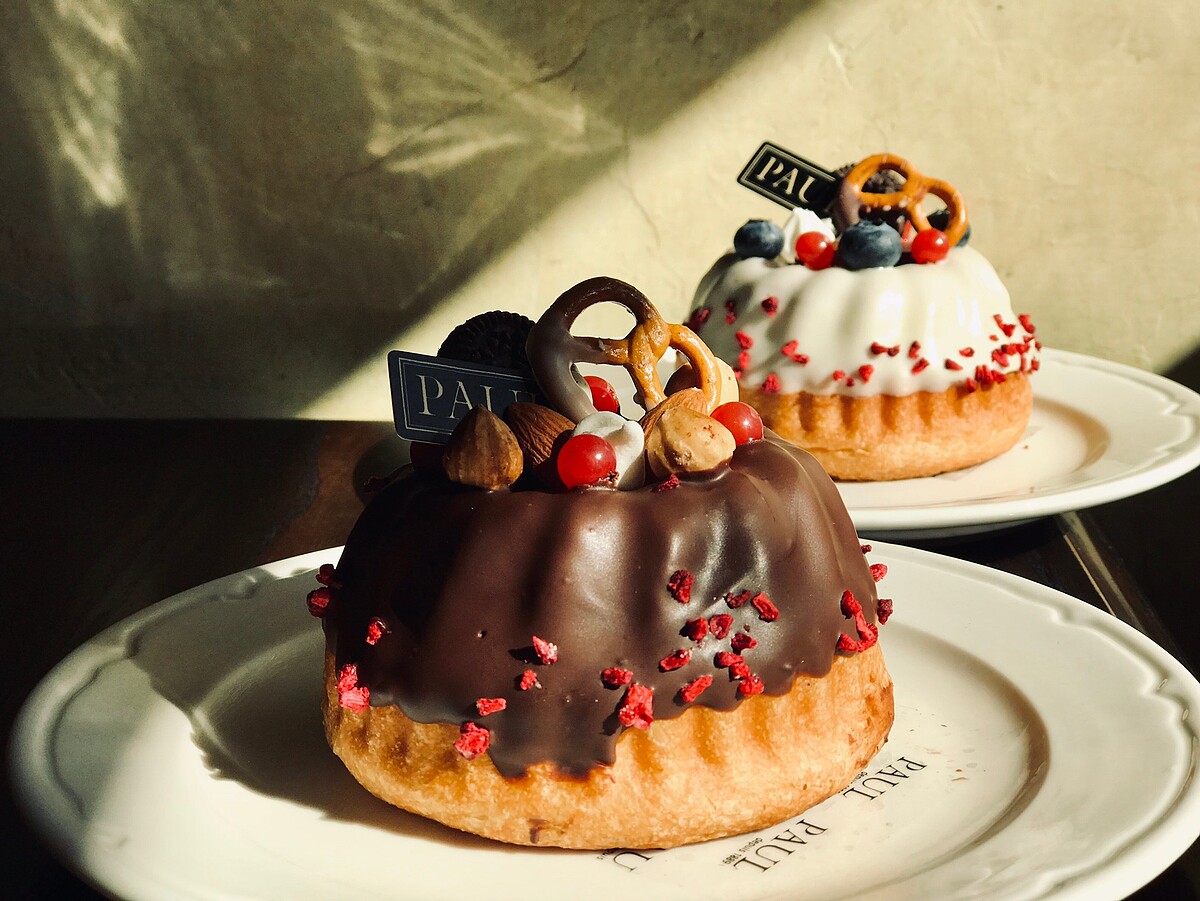 PAUL「雪花莓果」、「核果巧克」兩款咕咕霍夫,選用法國契作T65麵粉、奶油和雞蛋製成鬆軟的咕咕霍夫,中間分別加入滑順的巧克力卡士達、榛果奶油霜做為內餡,有著黑巧克力、白巧克力外層!