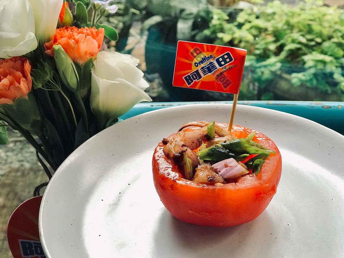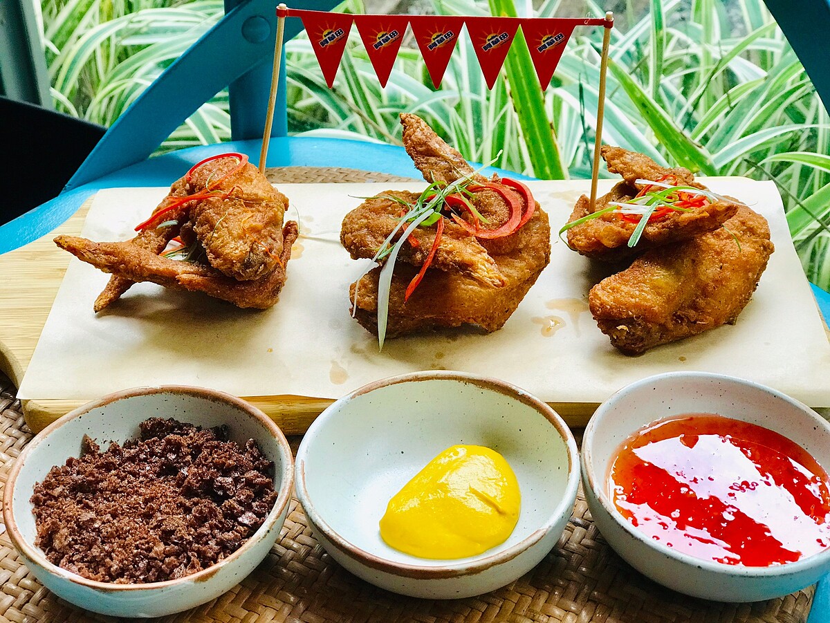 雞翅使用泰國魚露等香料調味,油炸起鍋後,配上泰式酸甜醬,撒上脆酷力,Thai chicken wings Crush,泰式與阿華田的酸甜碰撞。