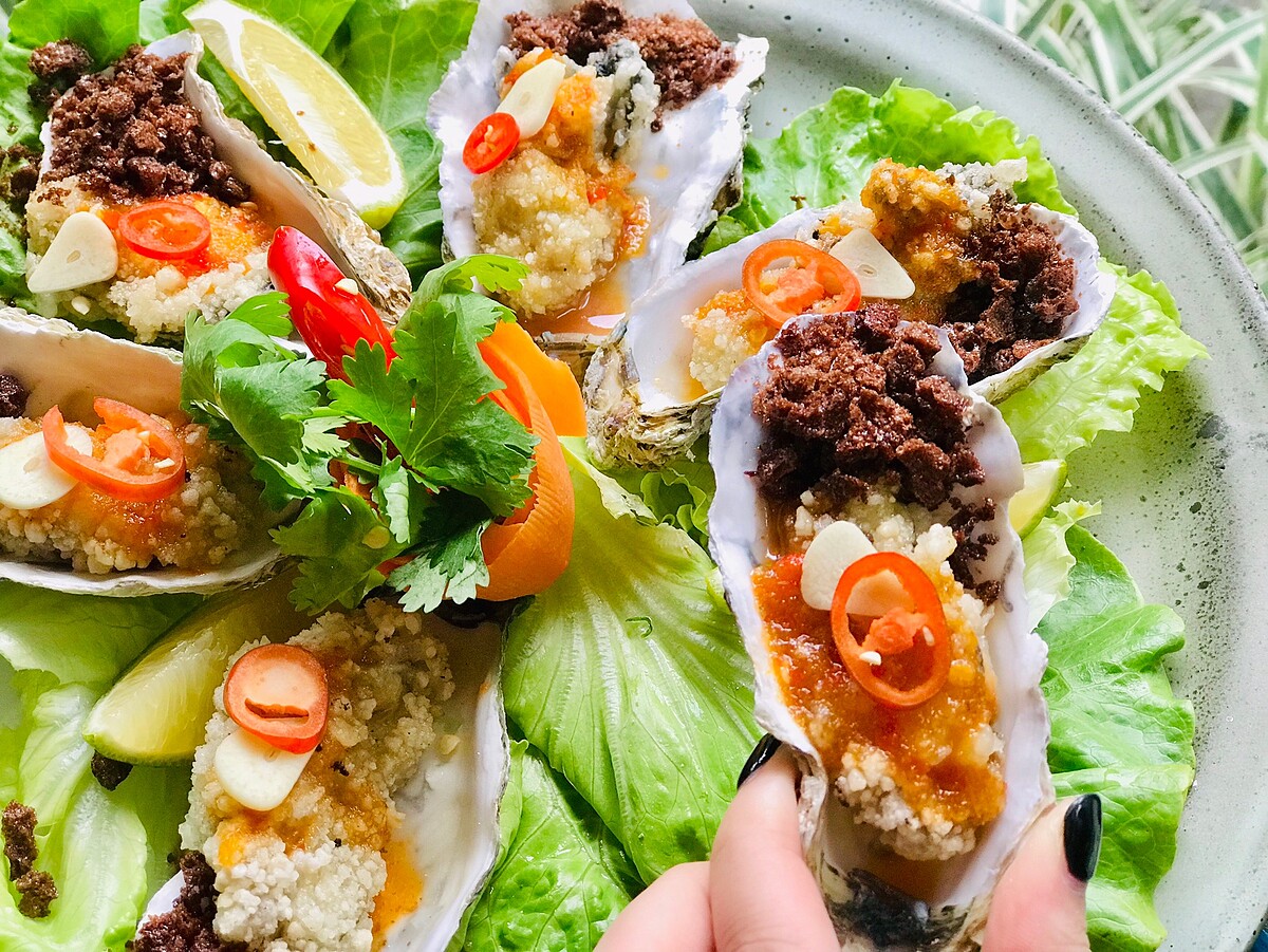 肥嫩的牡蠣,裹粉用高溫炸出酥脆的外衣,撒上脆酷力,再淋上主廚特調的酸辣海鮮醬汁。