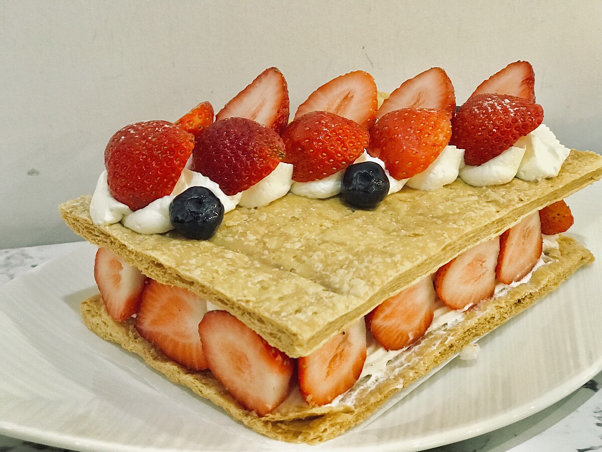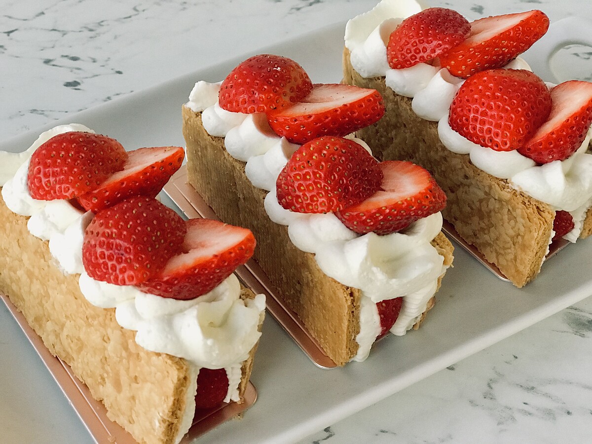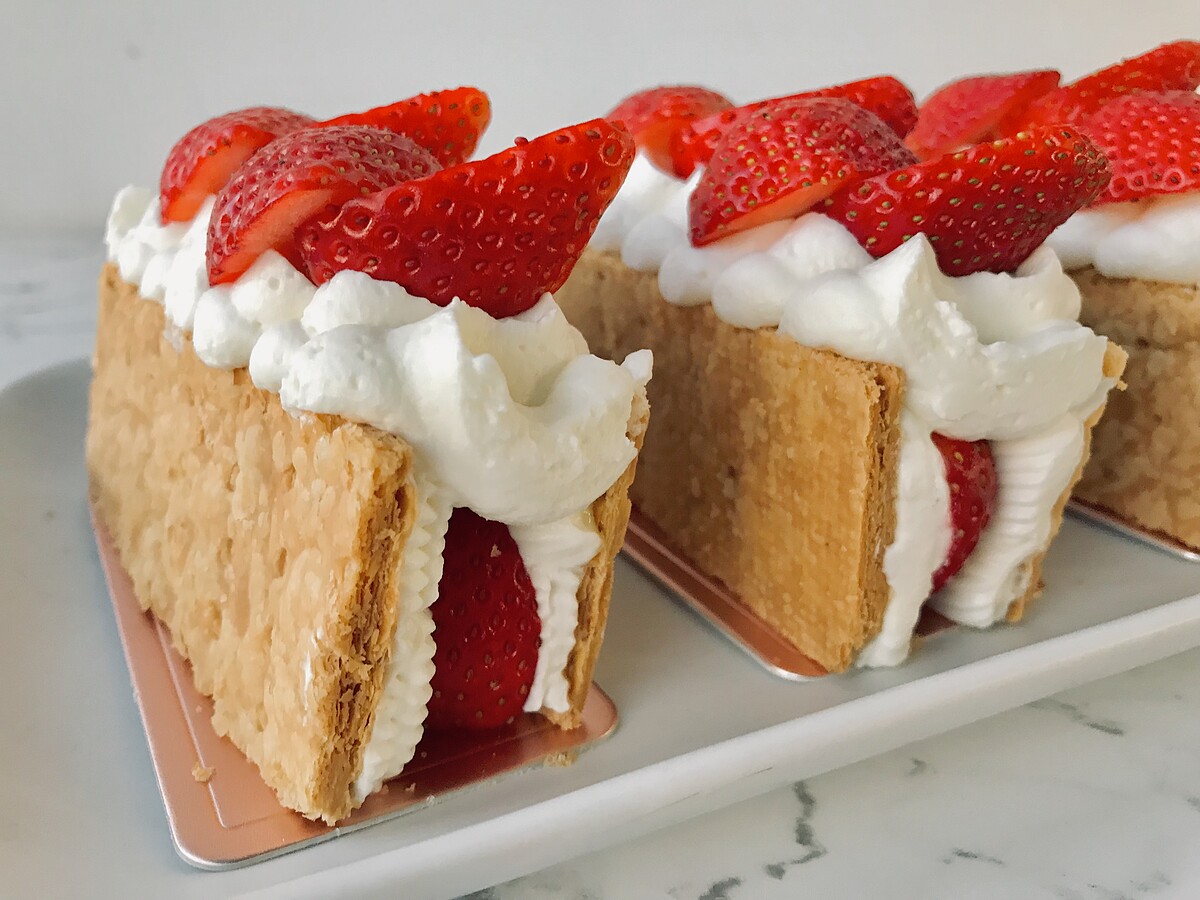 層層堆疊的草莓搭配酥脆的餅皮,再來杯熱茶或咖啡就是最完美的下午茶!