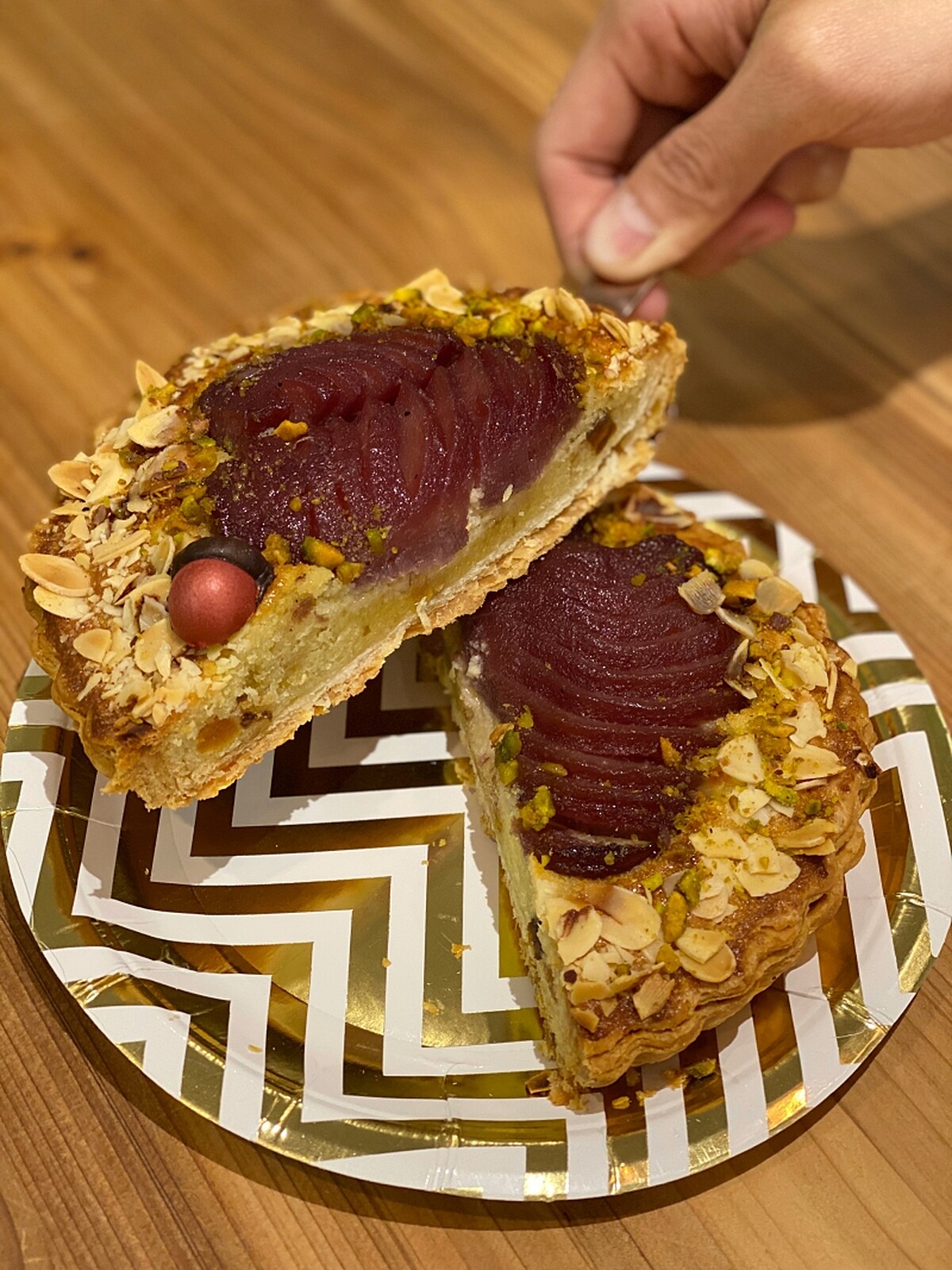 由藝人侯昌明與曾雅蘭夫婦投資的「PIETY派。對」,創立滿2年,其派的美味可是被吳奇隆、余文樂認可、選為彌月禮盒。2019年再推出去年廣受好評的紅酒洋梨手工甜派,先用獨家熱紅酒配方燉煮洋梨,讓甜味加入丁香、肉桂、荳蔻、八角、橙片、月桂葉香氣與紅酒的酸,配上杏仁奶油餡、果乾、橡果巧克力,光用看的就知道來頭不小。