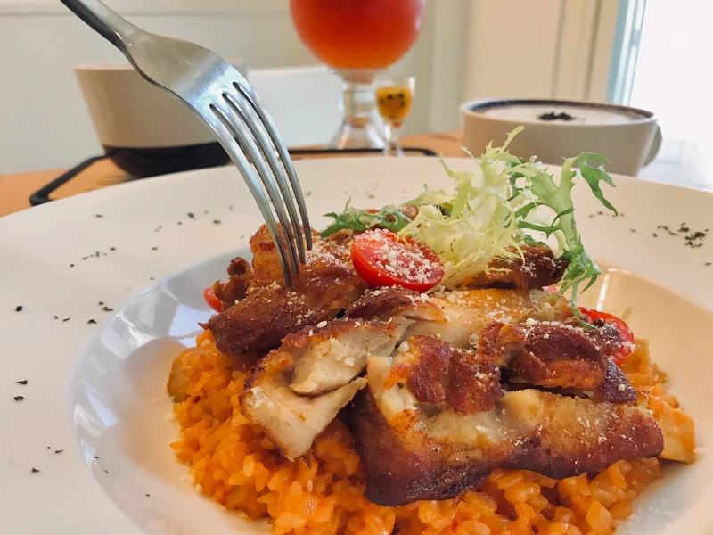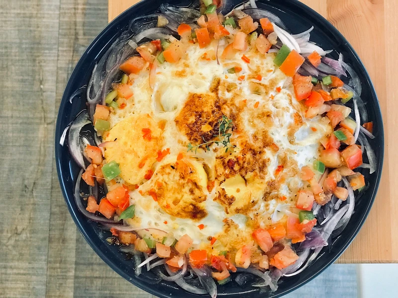 將涼拌沙拉配上泰式醬為基底品嚐起來酸甜適中,再鋪上兩面煎至金黃的蛋,最後再加上店內秘密武器PICO醬,清爽獨特多層次的口感絕對是開胃菜首選!