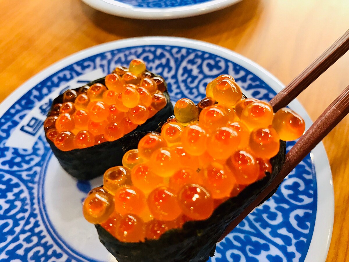 大粒飽滿的鱒魚卵,將海苔圍成一艘軍艦的模樣,入口後鱒魚卵在口中彈跳的口感,和魚卵爆汁的鮮甜,不禁讓人一口接著一口大快朵頤!